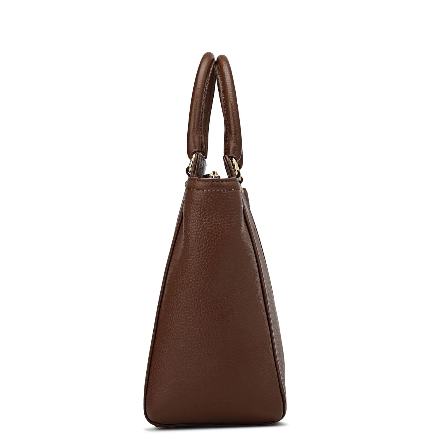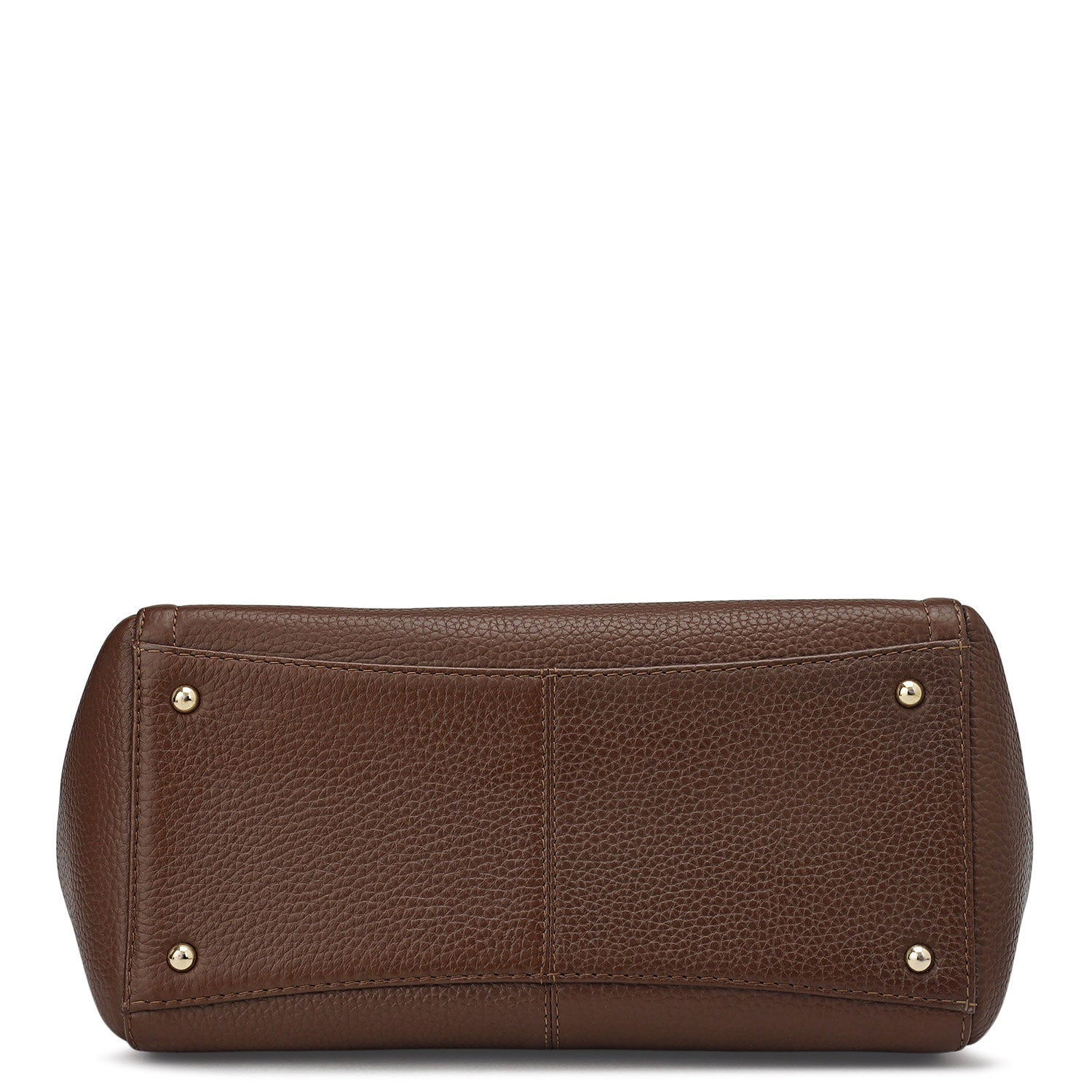 This elegant leather satchel handbag combines timeless style with practical functionality. Crafted from premium full-grain leather, it features a spacious interior with multiple compartments, and a detachable shoulder strap for versatile carrying options. Perfect for both professional and casual situations.