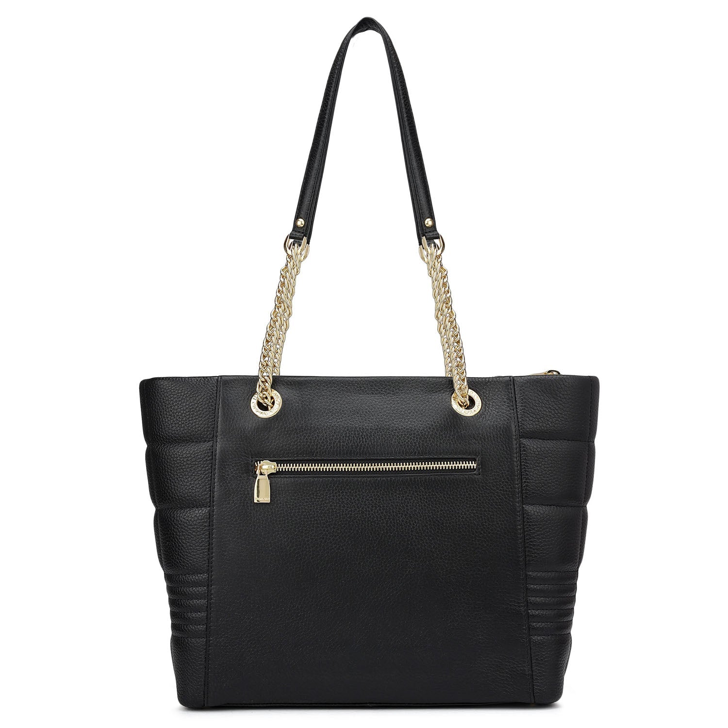 Medium Wax Stripe Leather Tote - Black