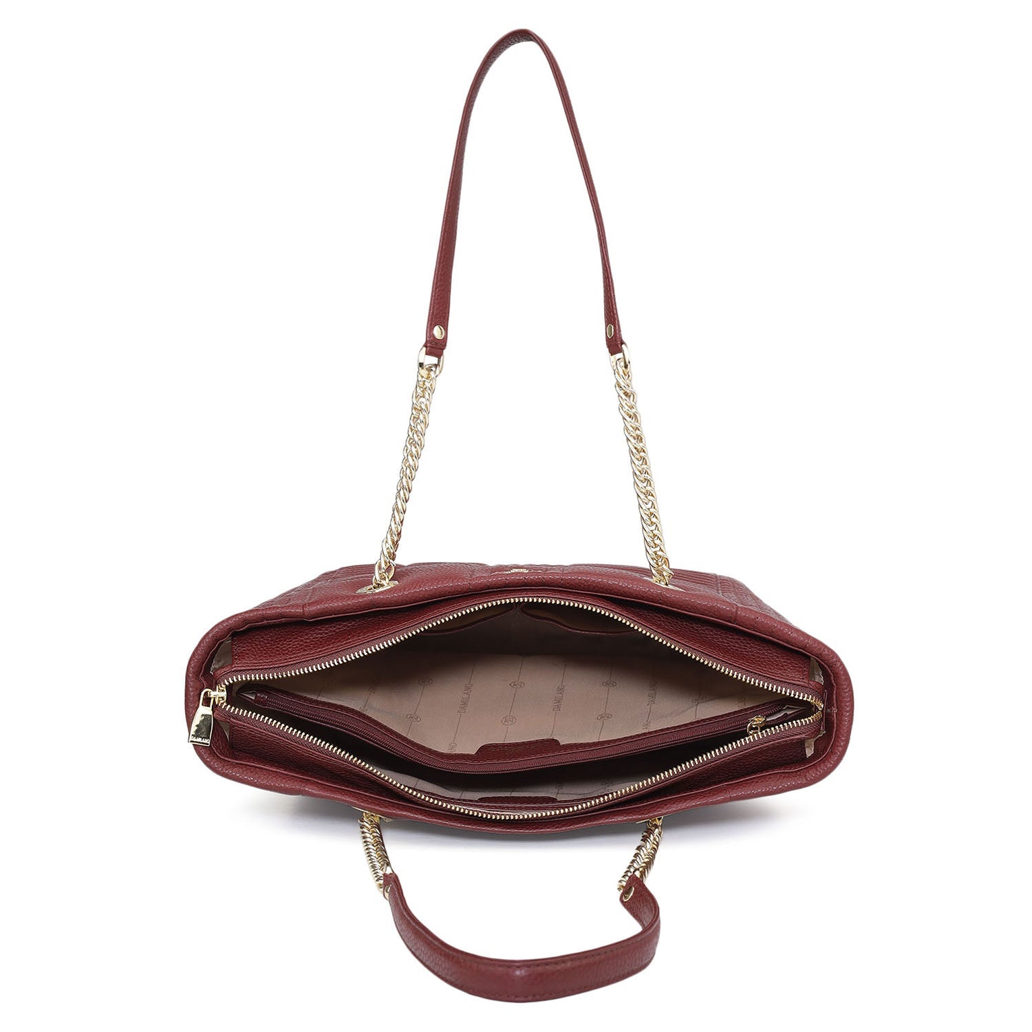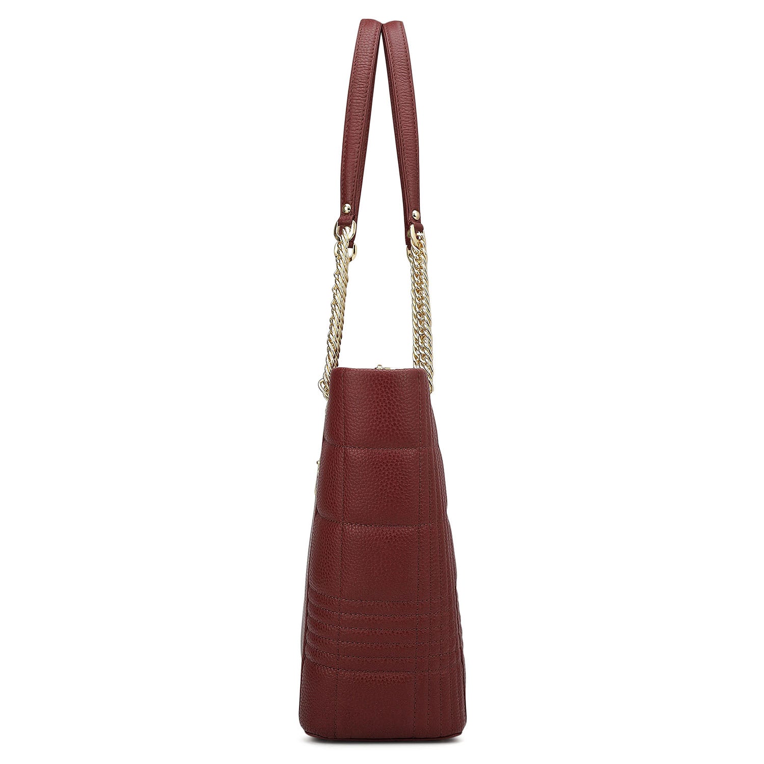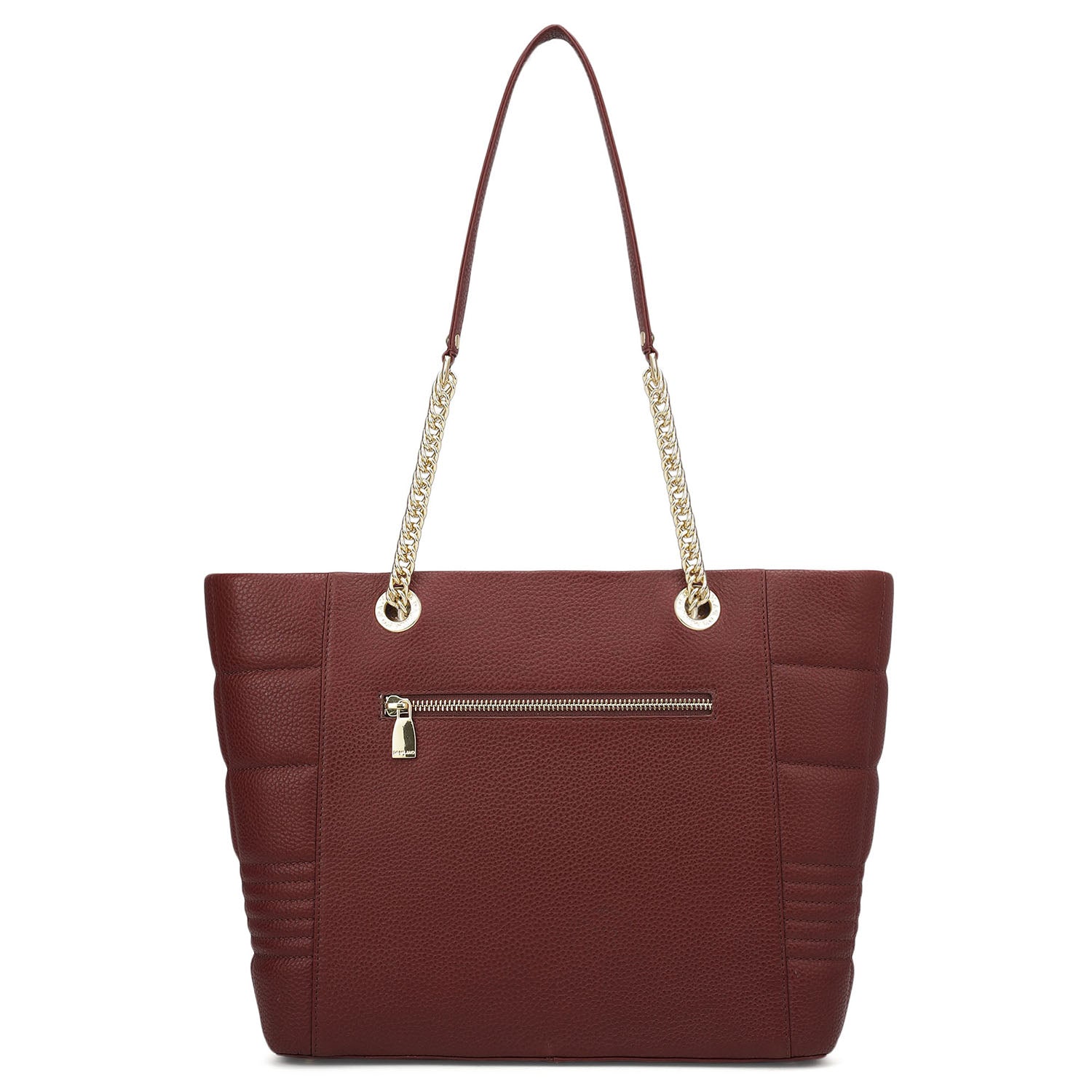Medium Wax Stripe Leather Tote - Wine