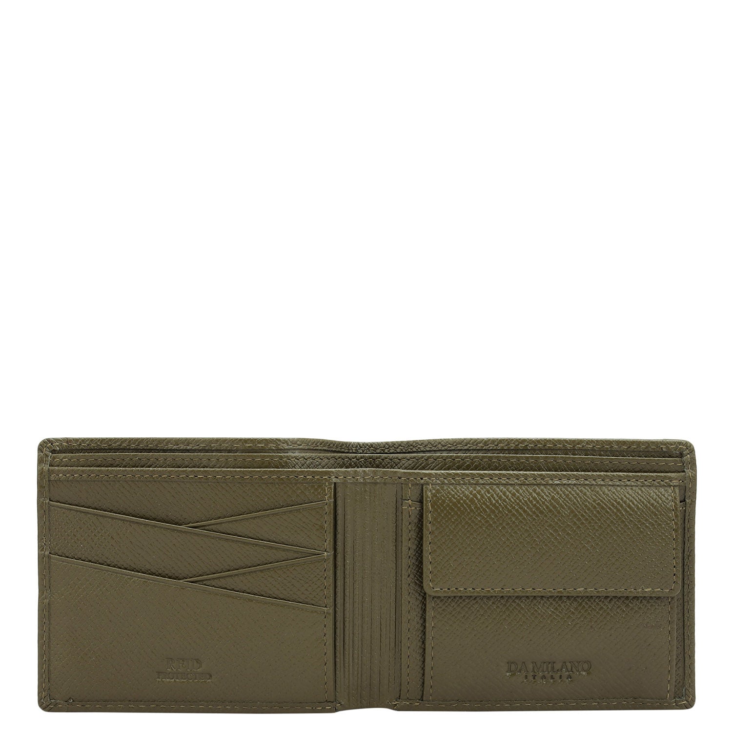 Crafted from textured leather, Da Milano men's bifold wallet offers a compact yet stylish design. Featuring easy-to-organize compartments, card slots, and pockets, it combines practicality with elegance. Subtle branding on the front enhances its refined appearance.