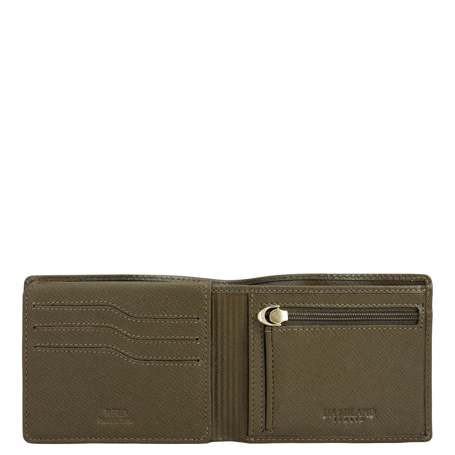 Crafted from textured leather, Da Milano men's bifold wallet offers a compact yet stylish design. Featuring easy-to-organize compartments, card slots, and pockets, it combines practicality with elegance. Subtle branding on the front enhances its refined appearance.