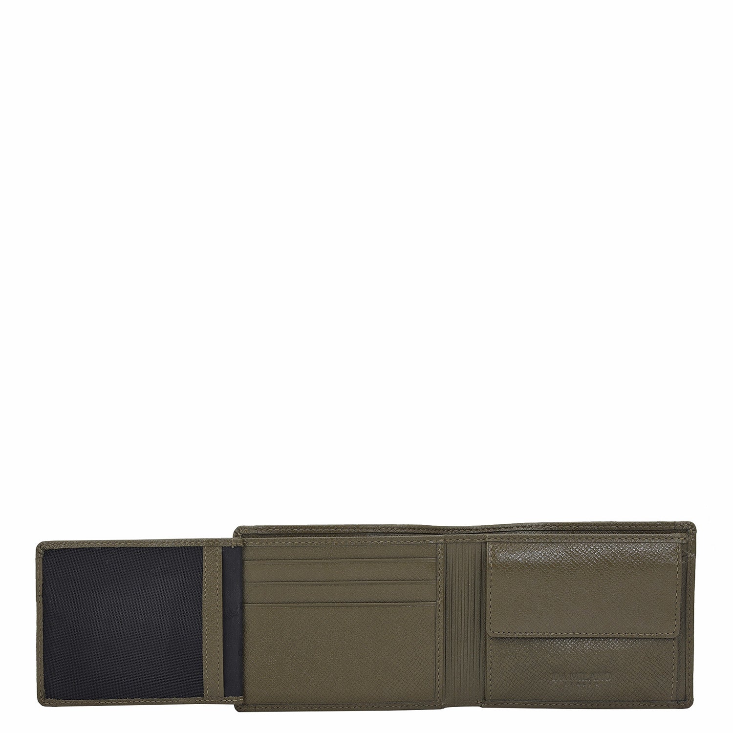 Crafted from textured leather, Da Milano men's bifold wallet offers a compact yet stylish design. Featuring easy-to-organize compartments, card slots, and pockets, it combines practicality with elegance. Subtle branding on the front enhances its refined appearance.