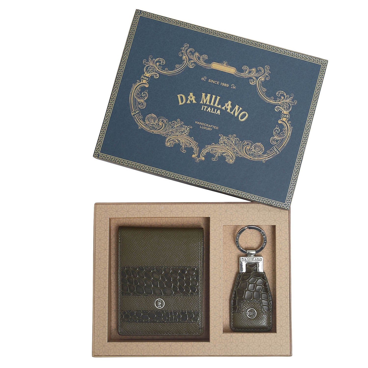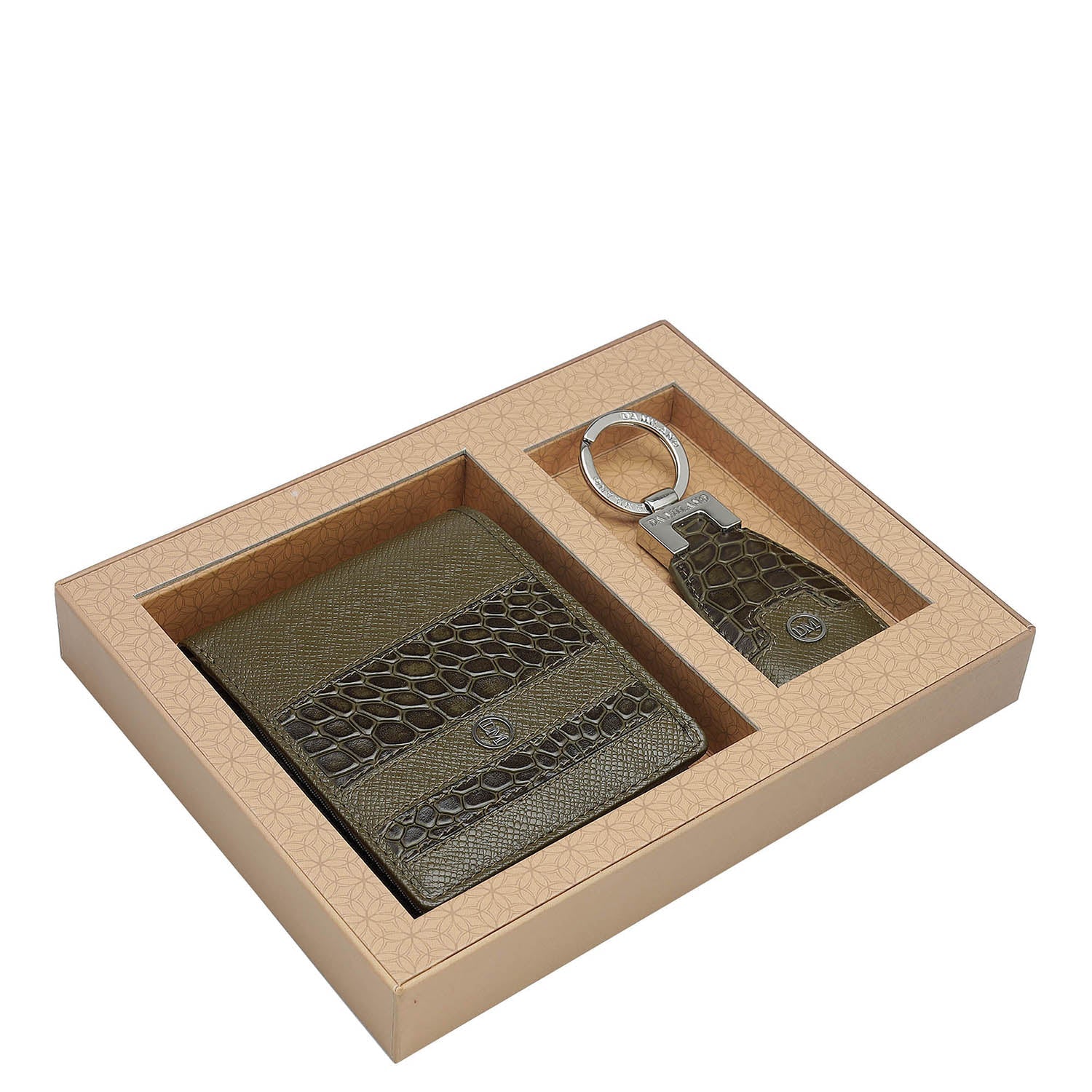 Military Green Franzy Croco Leather Mens Wallet & Keychain Gift Set