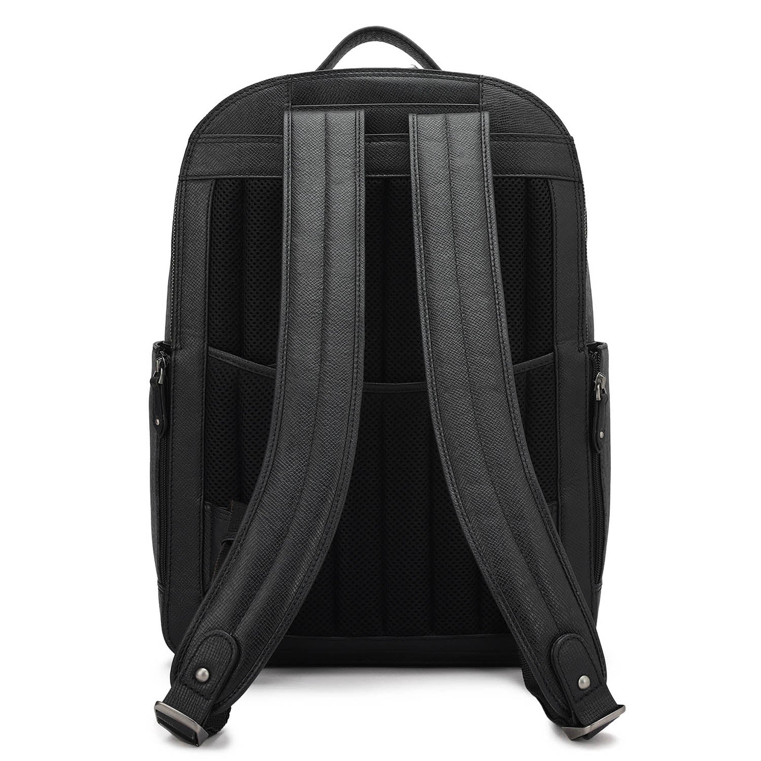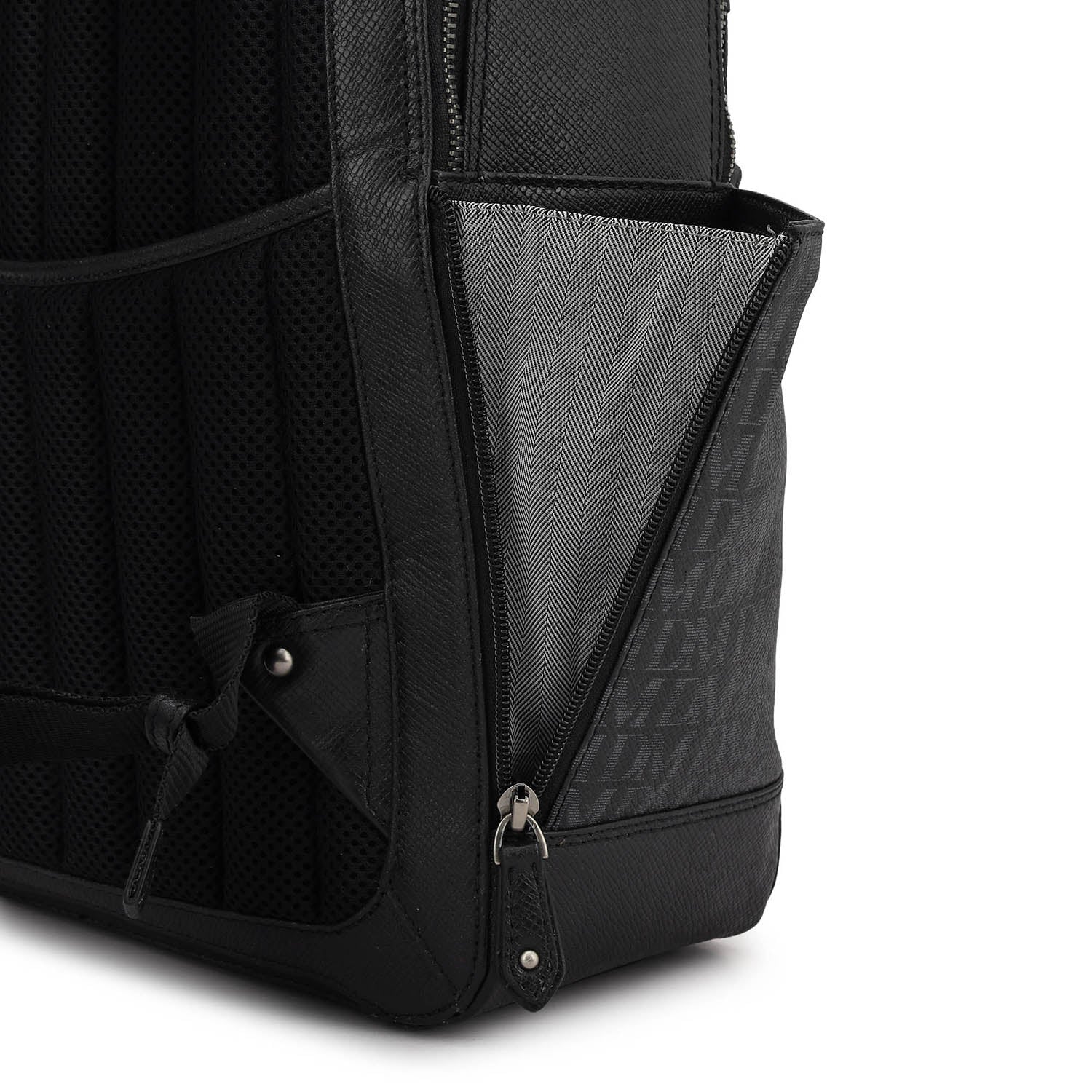 Leather backpack with a play of texture. Featuring multipurpose pockets on the exterior as well as interior to enhance utility. This functional bag is the perfect fusion of Italian craftsmanship and contemporary style. Comes with a detachable shoulder strap, and the bag can fit a standard laptop up to 14 inches.