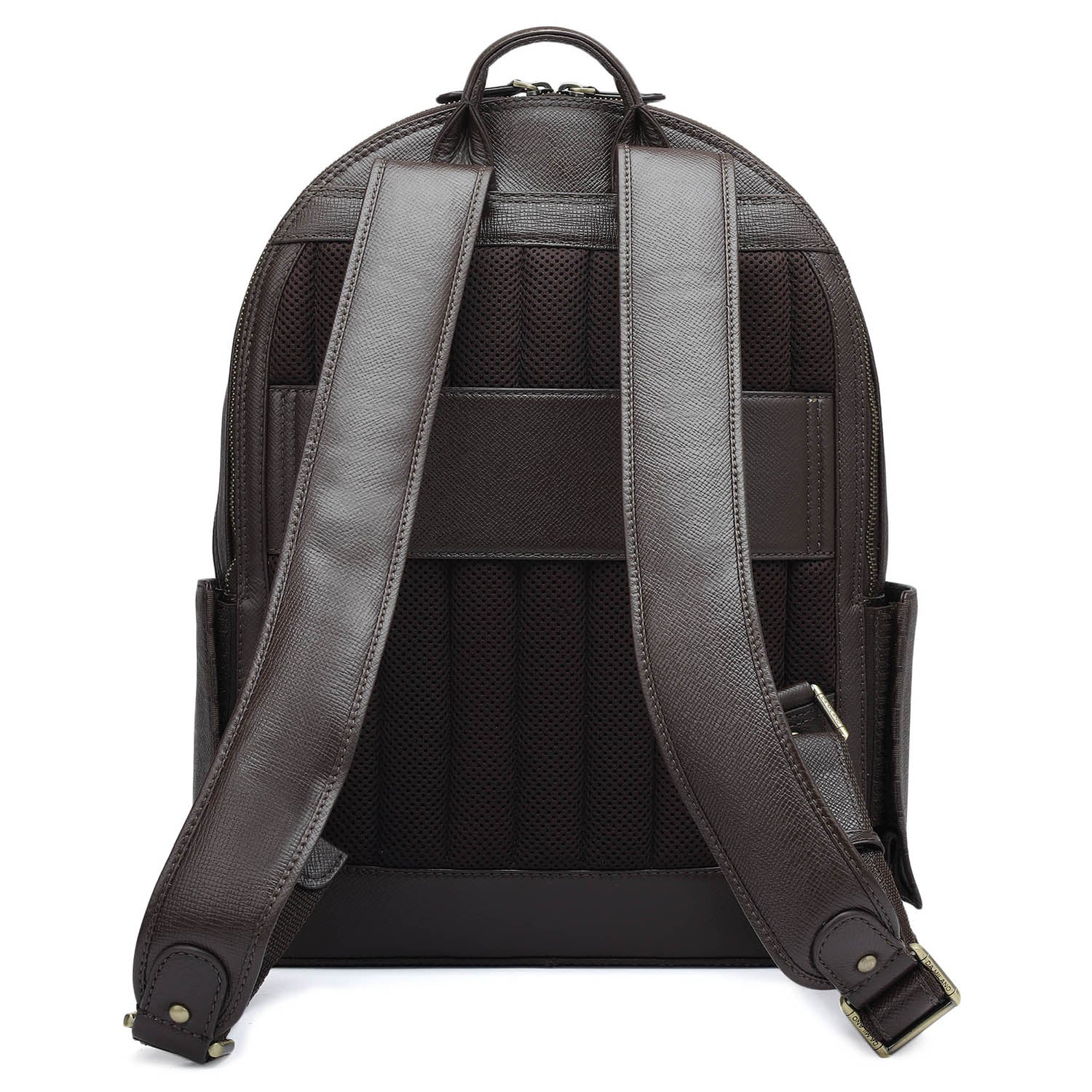 Leather backpack with a play of texture. Featuring multipurpose pockets on the exterior as well as interior to enhance utility. This functional bag is the perfect fusion of Italian craftsmanship and contemporary style. Comes with a detachable shoulder strap, and the bag can fit a standard laptop up to 13 inches.