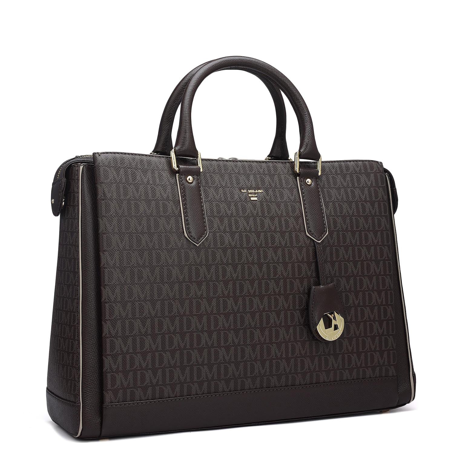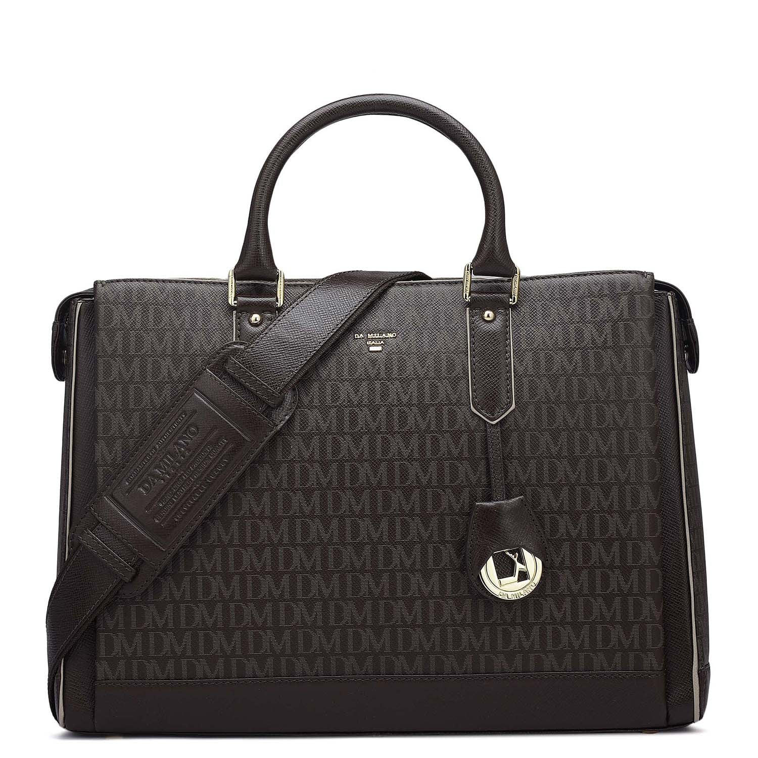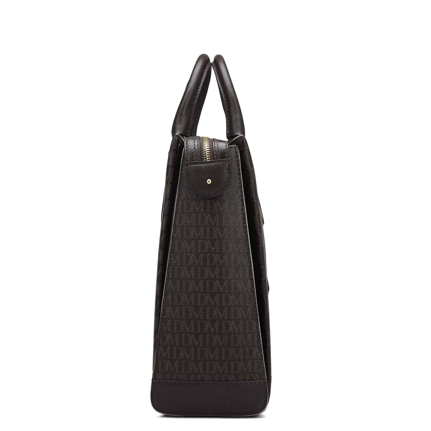 Monogram Franzy Leather Laptop Bag - Chocolate