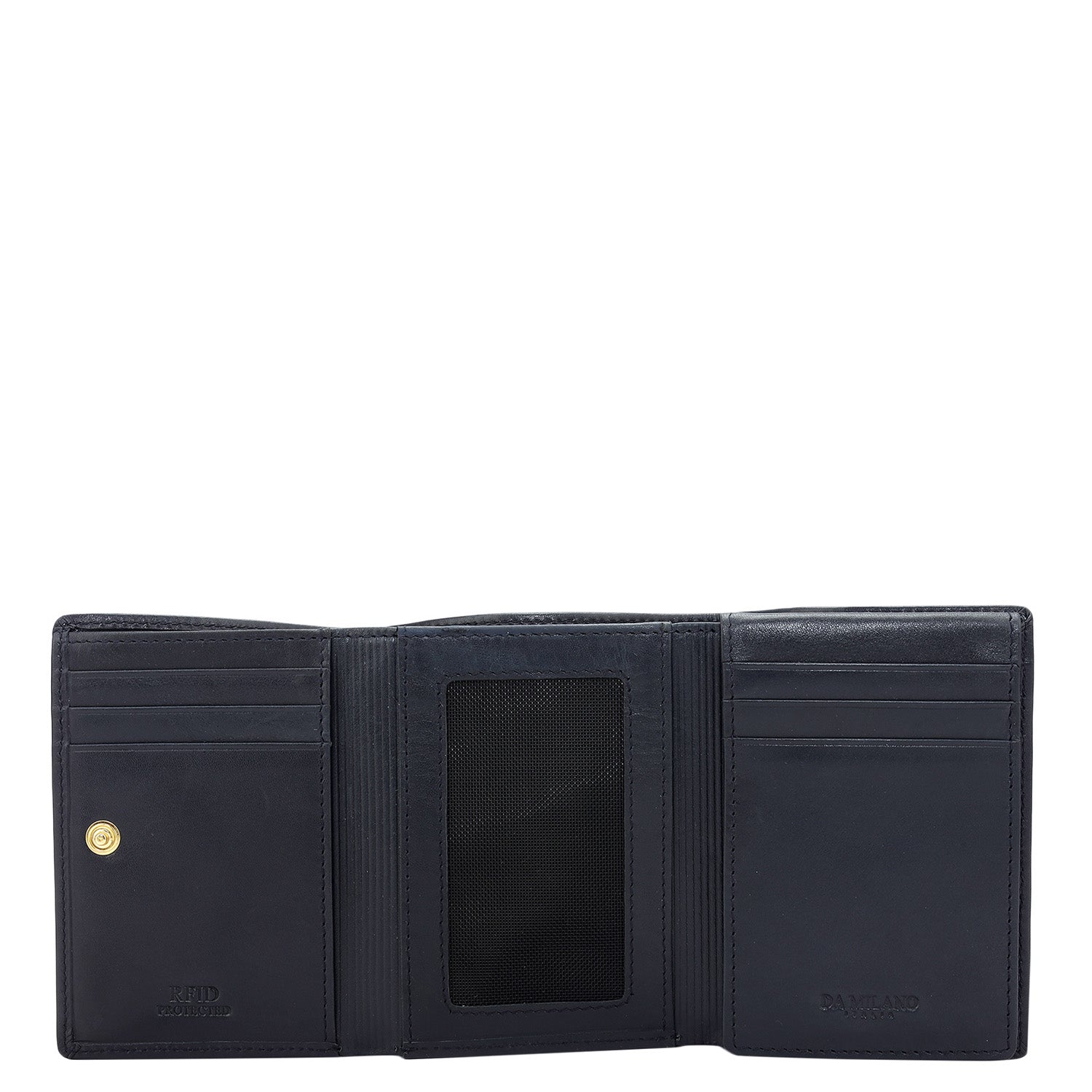 Crafted from textured leather, Da Milano men's bifold wallet offers a compact yet stylish design. Featuring easy-to-organize compartments, card slots, and pockets, it combines practicality with elegance. Subtle branding on the front enhances its refined appearance.