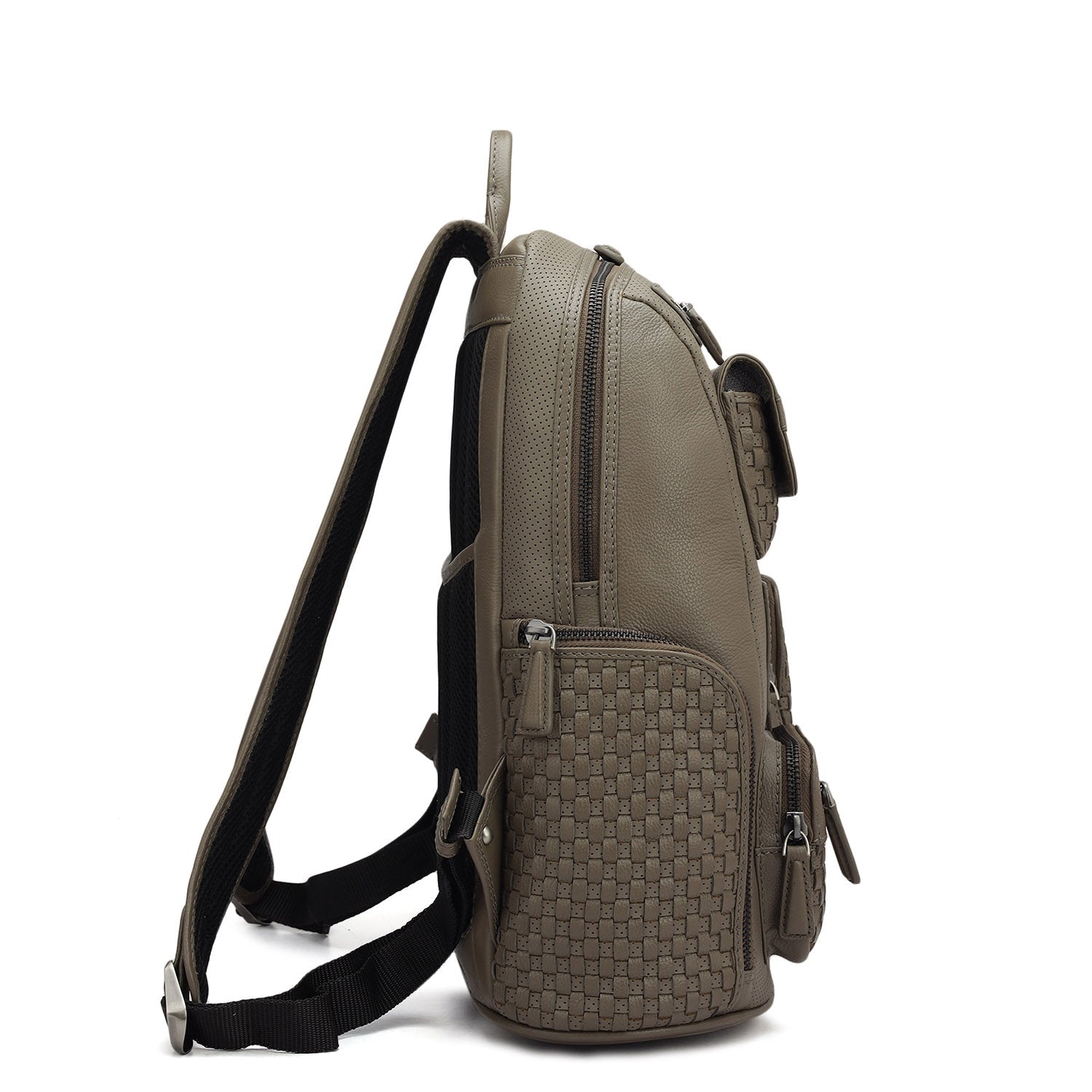 Leather backpack with a play of texture. Featuring multipurpose pockets on the exterior as well as interior to enhance utility. This functional bag is the perfect fusion of Italian craftsmanship and contemporary style. Comes with a detachable shoulder strap, and the bag can fit a standard laptop up to 13 inches.