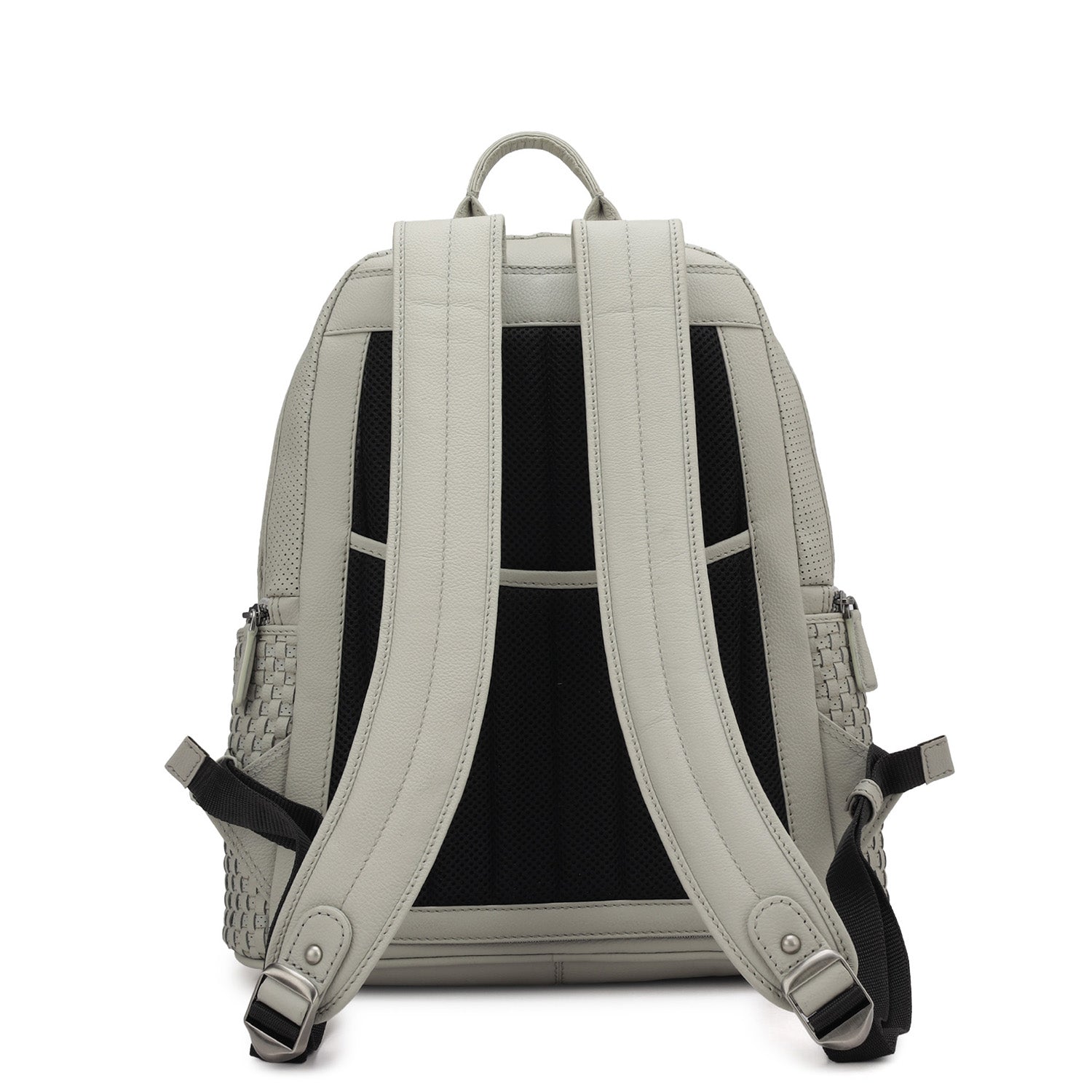 Leather backpack with a play of texture. Featuring multipurpose pockets on the exterior as well as interior to enhance utility. This functional bag is the perfect fusion of Italian craftsmanship and contemporary style. Comes with a detachable shoulder strap, and the bag can fit a standard laptop up to 13 inches.
