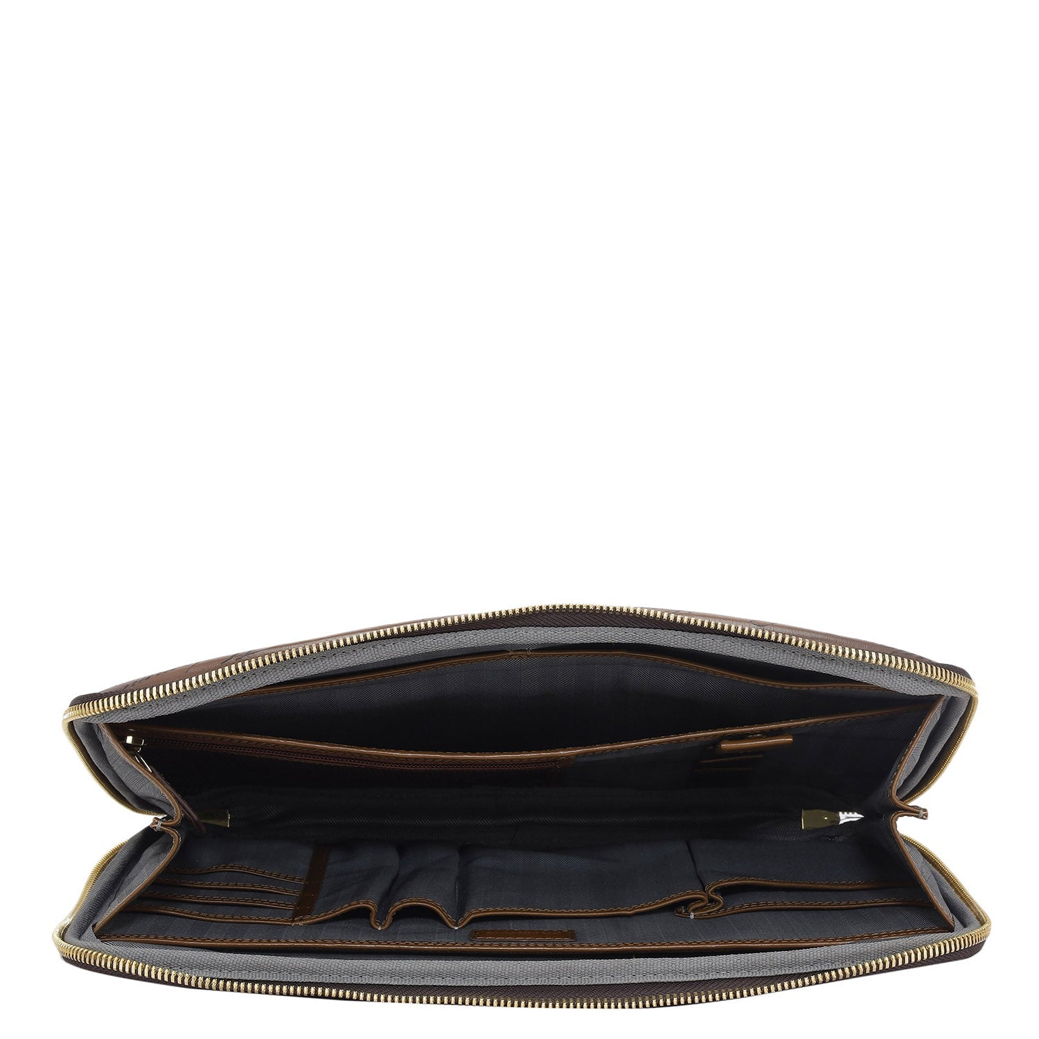A fine leather folder with a smart exterior. Distinguished by its metal hardware and textured leather, the bag is carefully crafted to maximize utility while keeping it stylish.