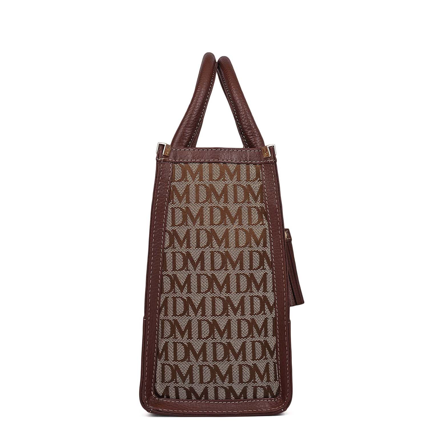 Small Canvas Wax Leather Book Tote - Beige & Espresso