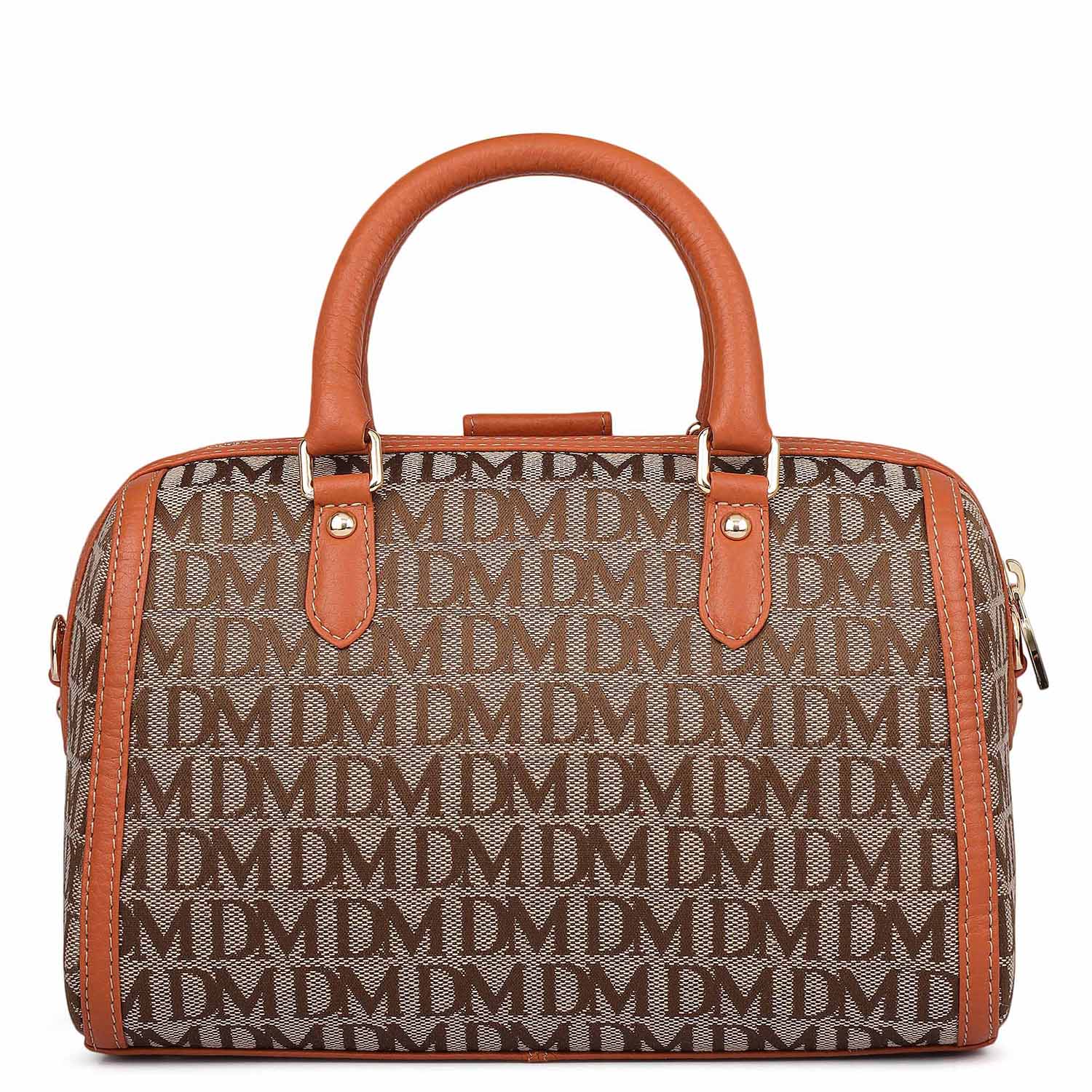 Small Canvas Wax Leather Satchel - Beige & Orange