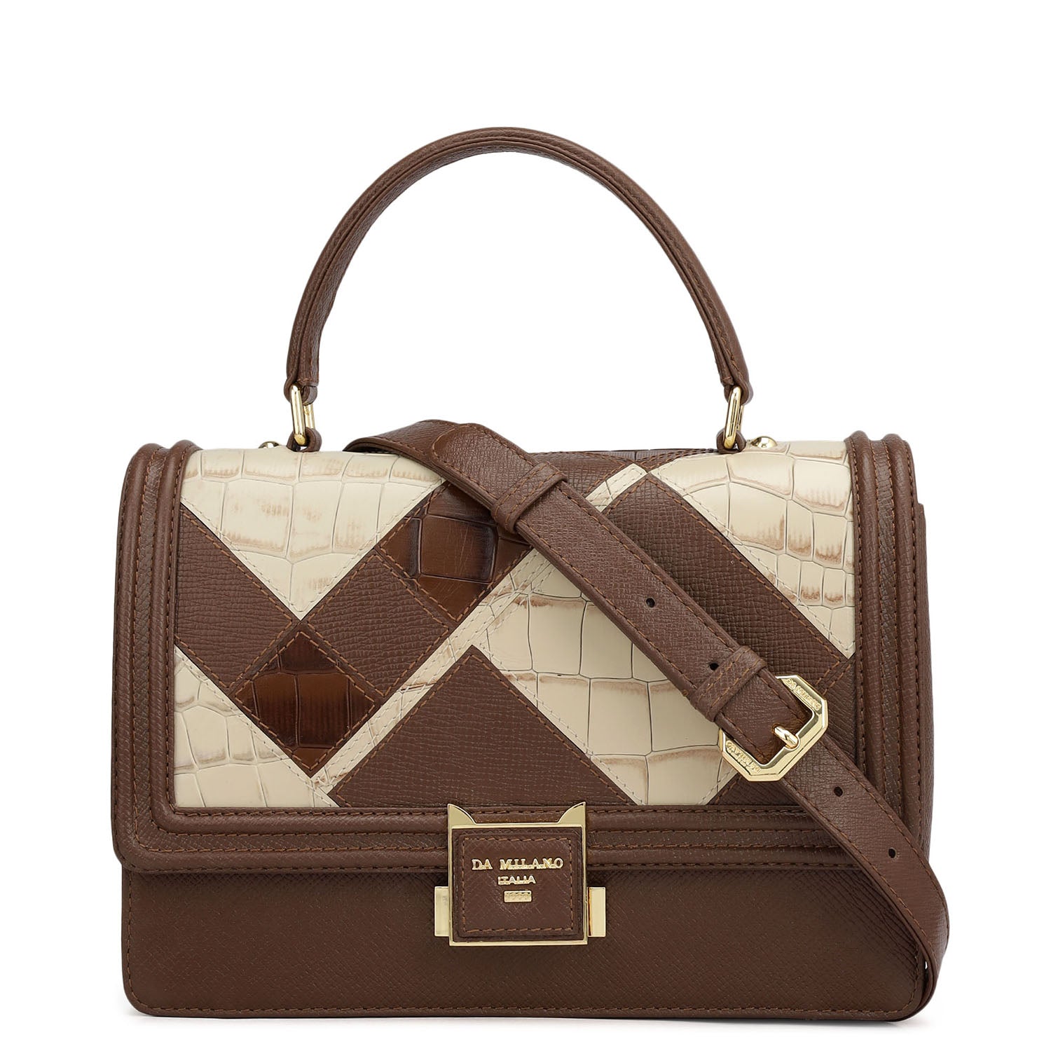 This elegant leather satchel handbag combines timeless style with practical functionality. Crafted from premium full-grain leather, it features a spacious interior with multiple compartments, and a detachable shoulder strap for versatile carrying options. Perfect for both professional and casual situations.