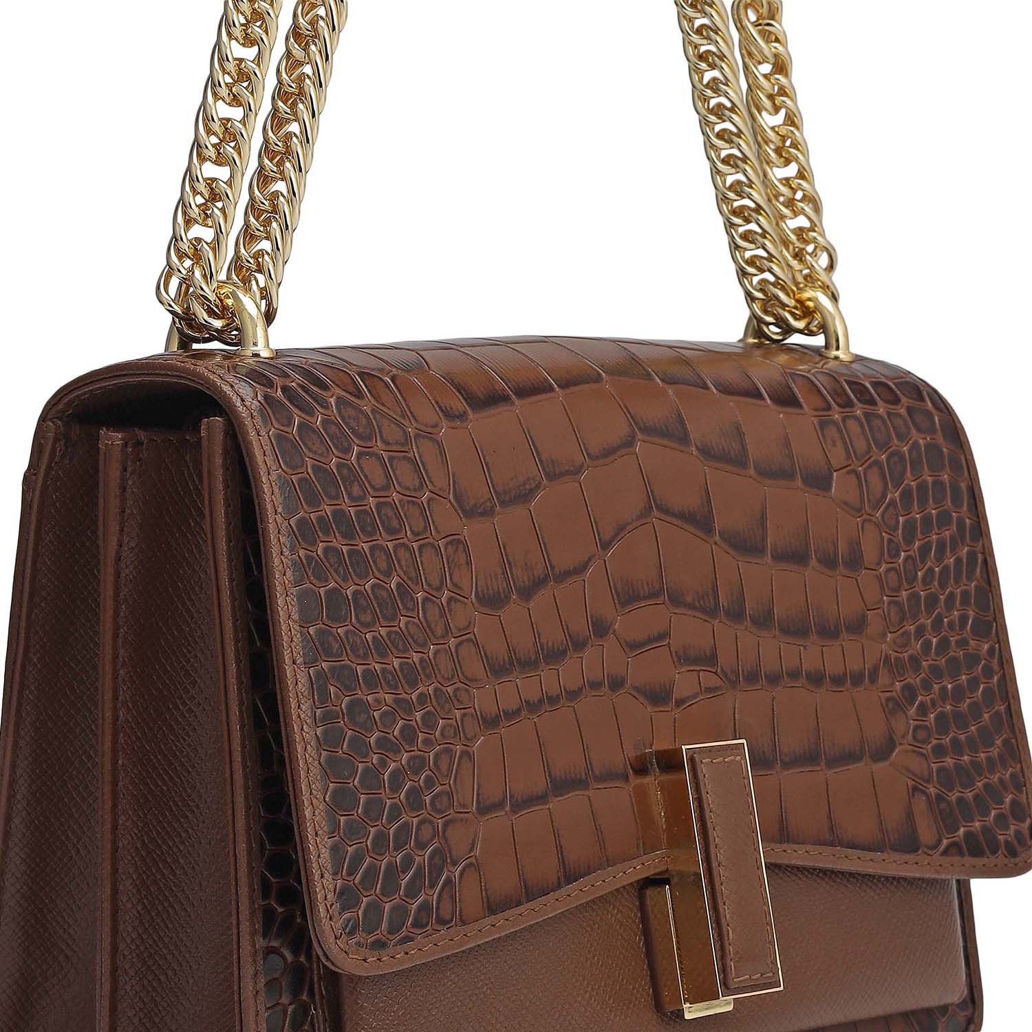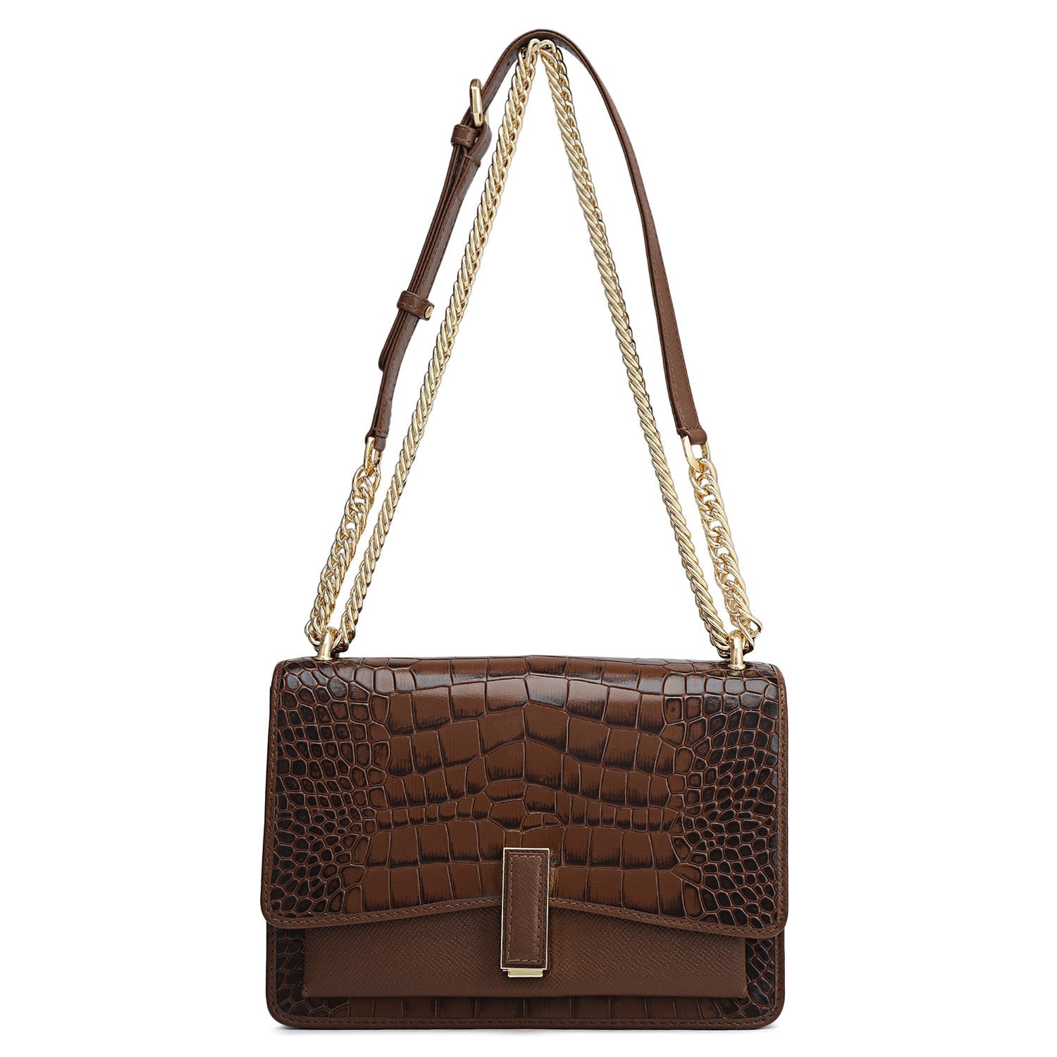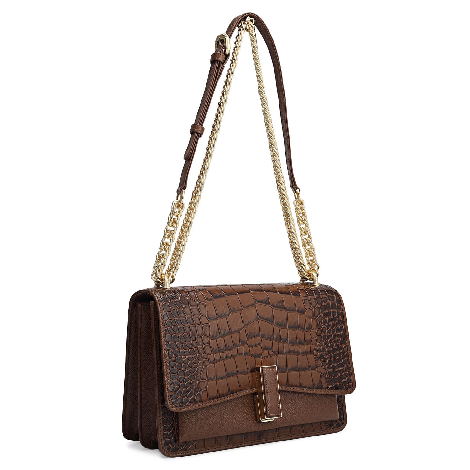 Small Croco Franzy Leather Shoulder Bag - Date