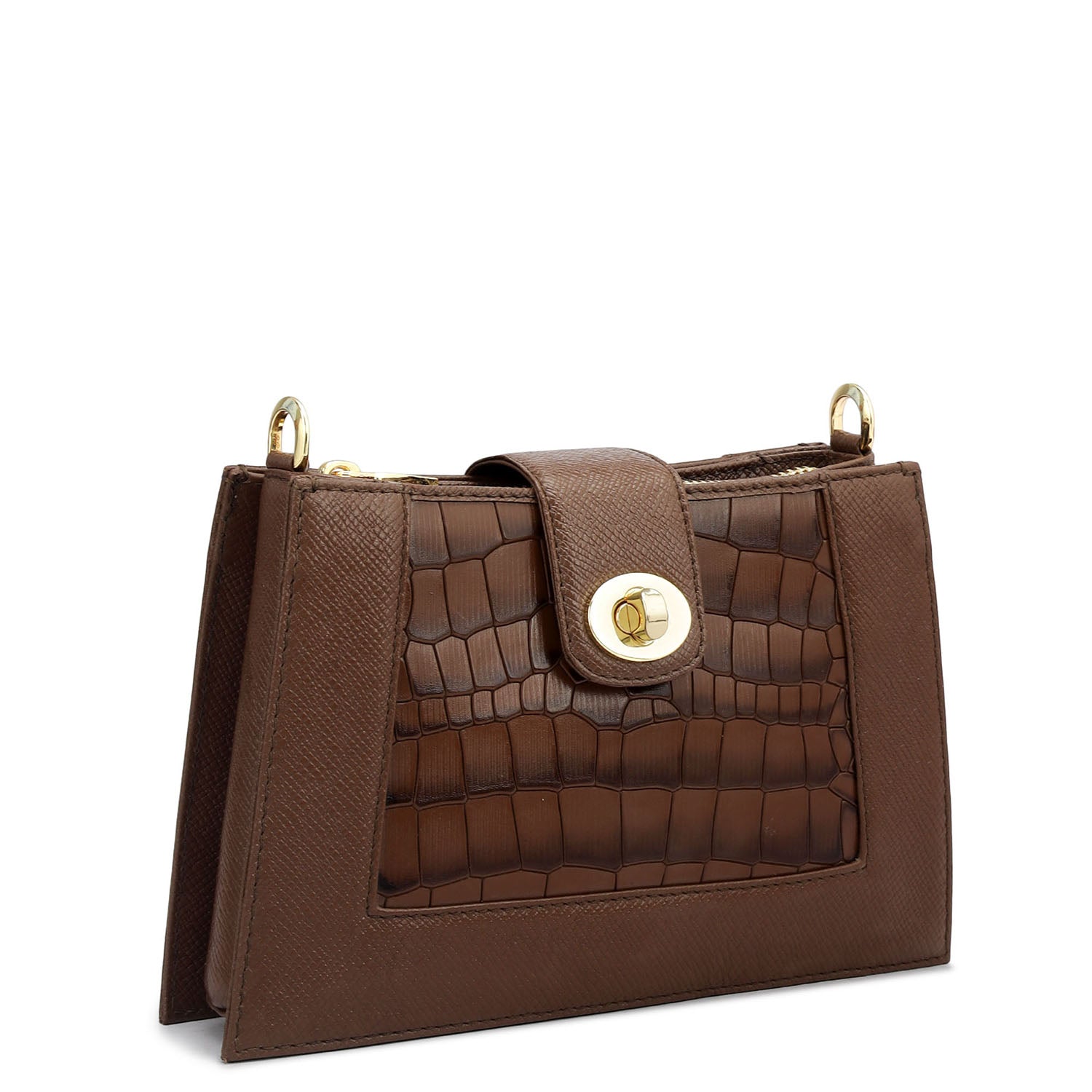 This elegant leather sling handbag combines style and functionality, featuring a sleek design and adjustable strap for versatile wear. Crafted from premium leather, it offers a spacious interior with secure zip closure, perfect for everyday essentials.