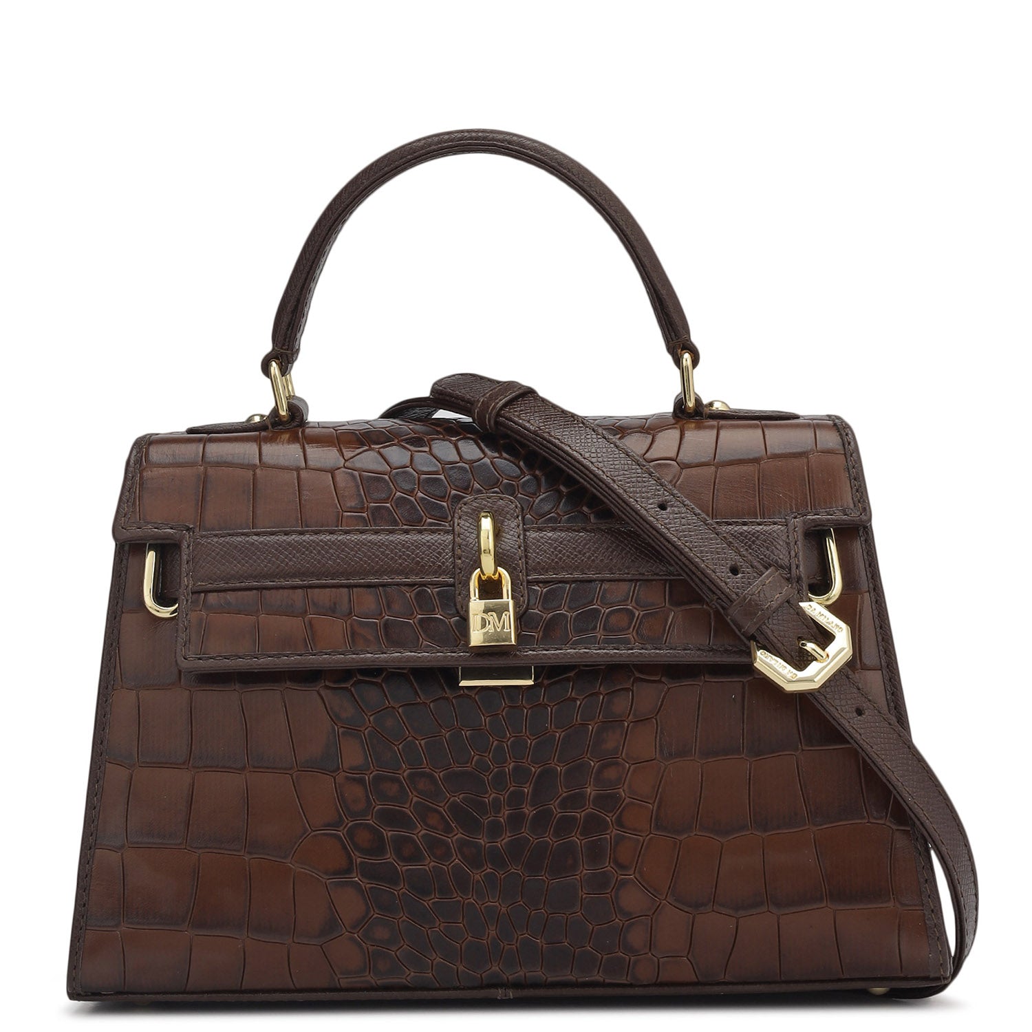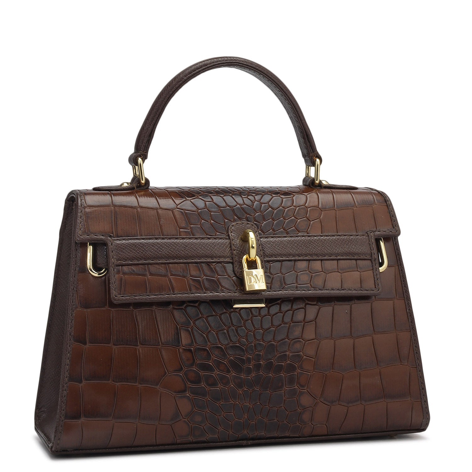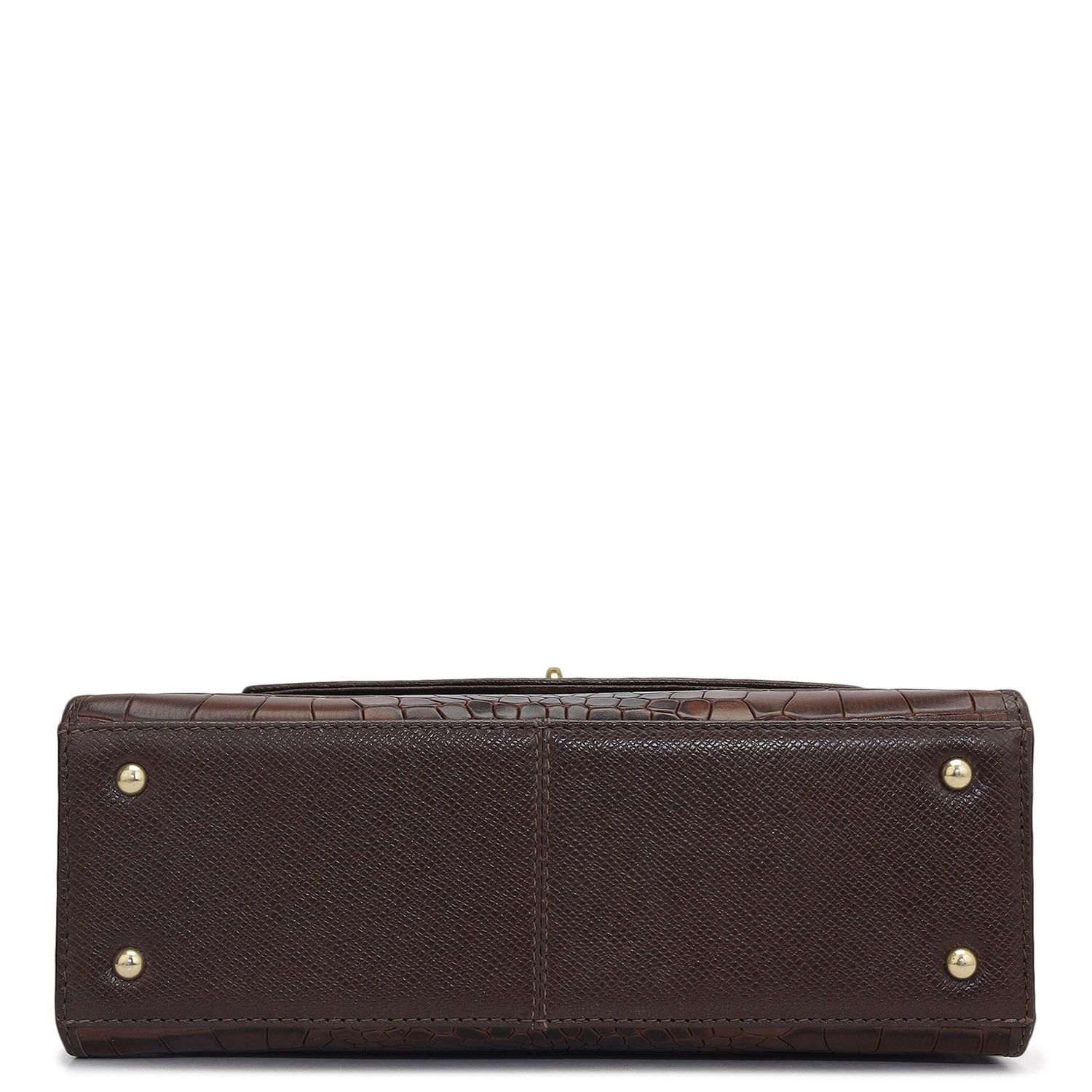 Small Croco Leather Satchel - Brown
