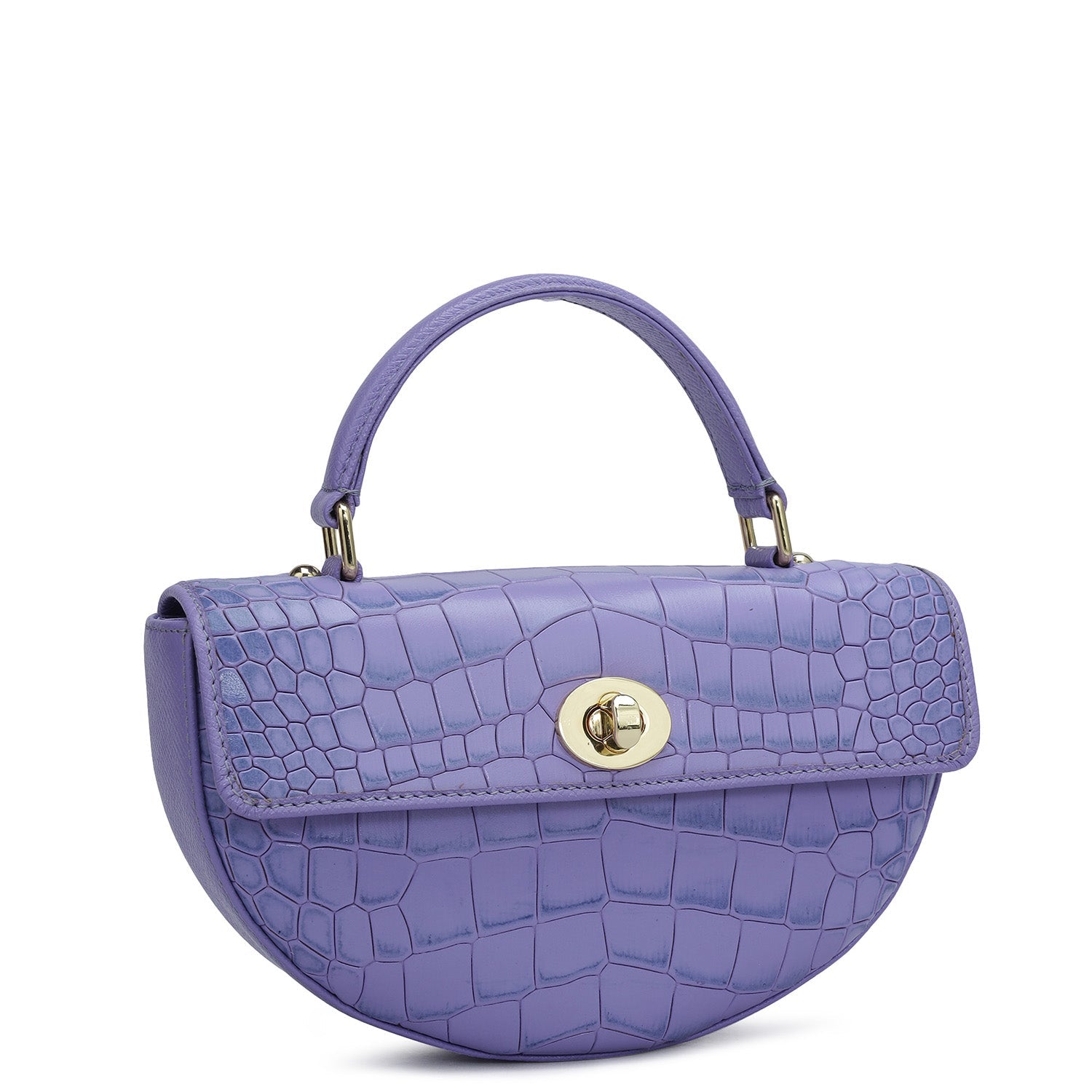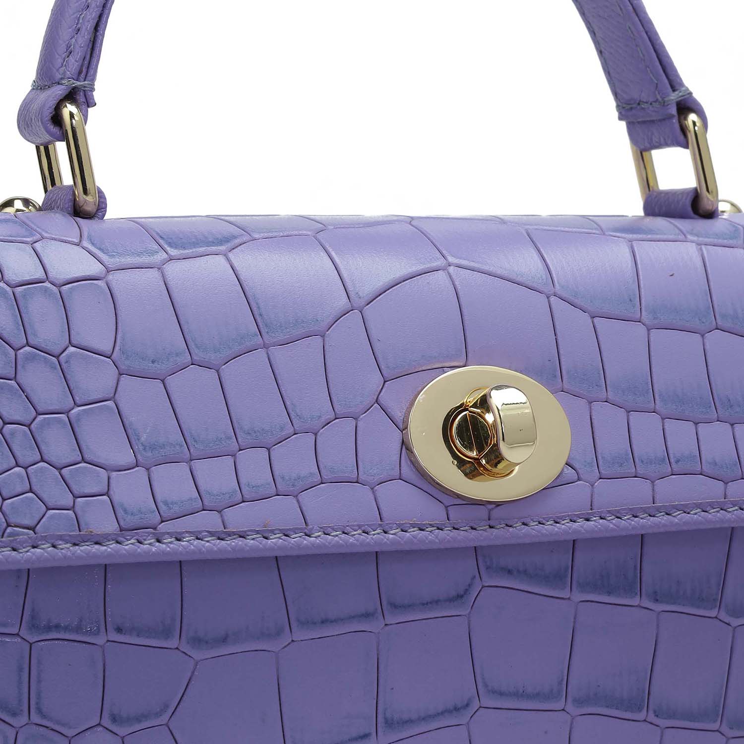 Small Croco Leather Satchel - Purple Haze