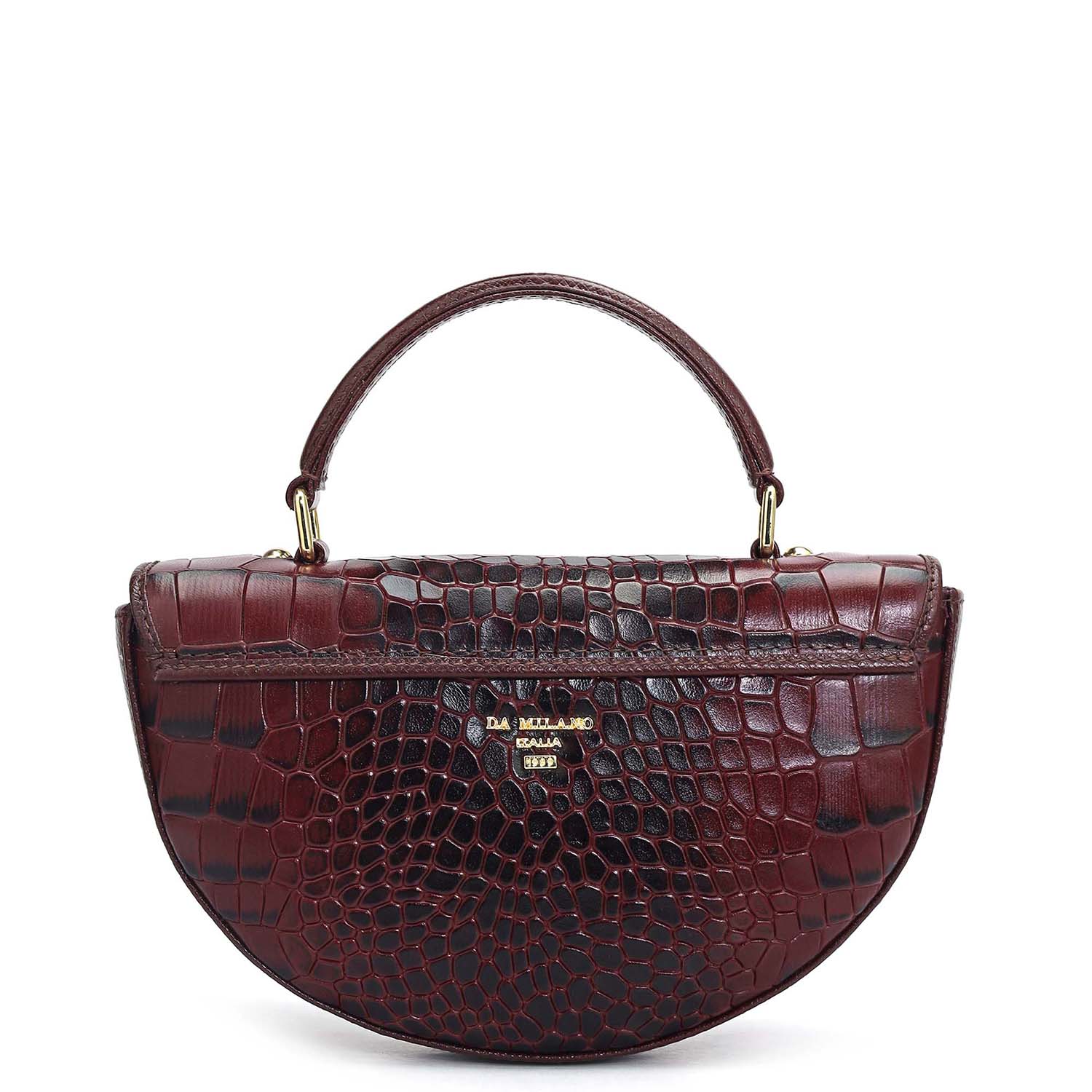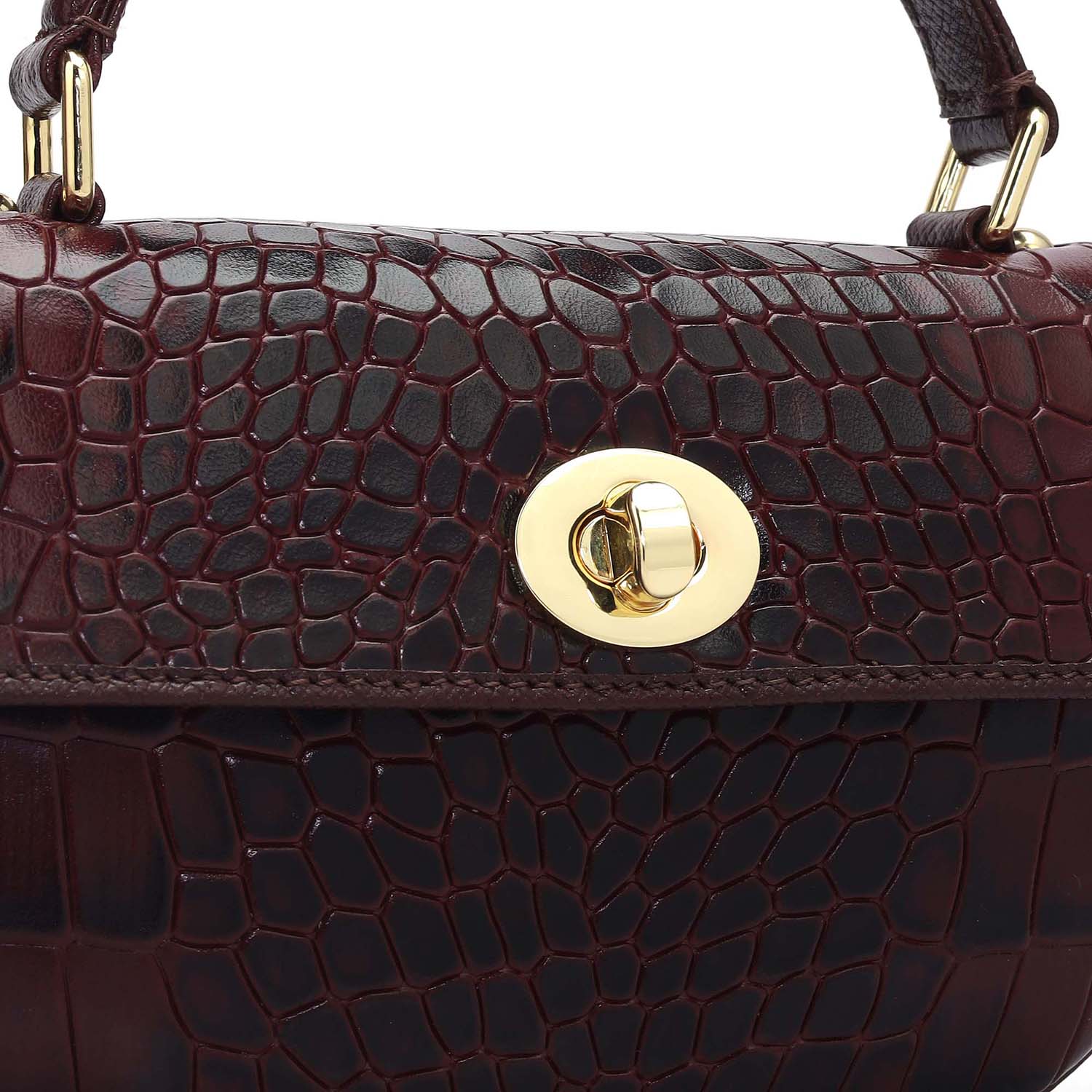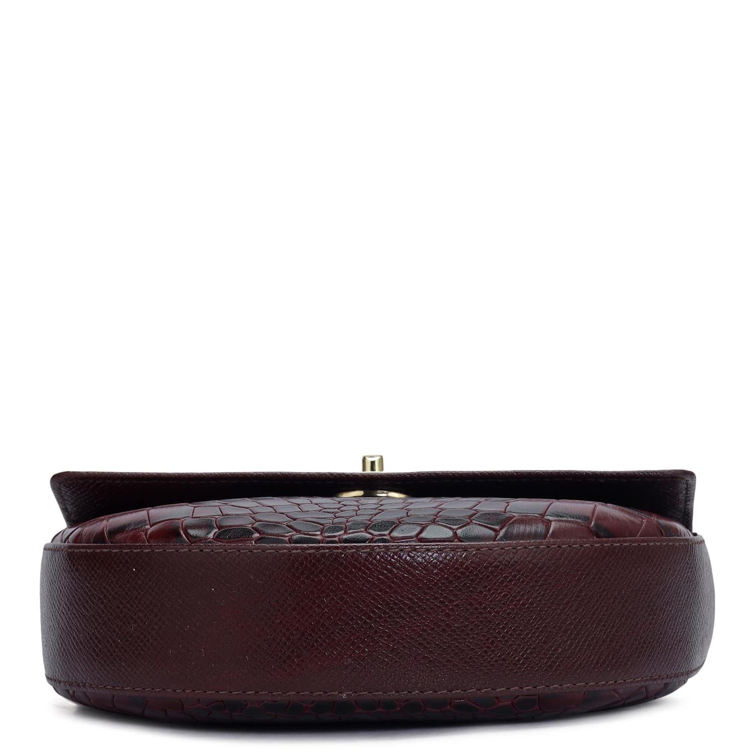 Small Croco Leather Satchel - Wine