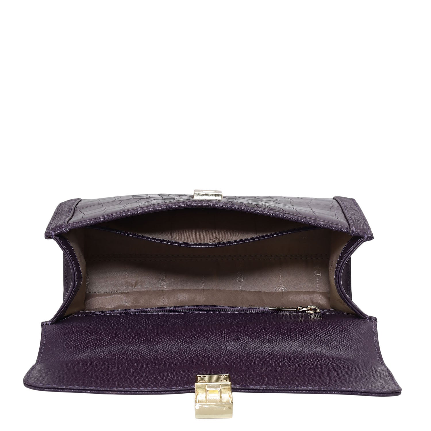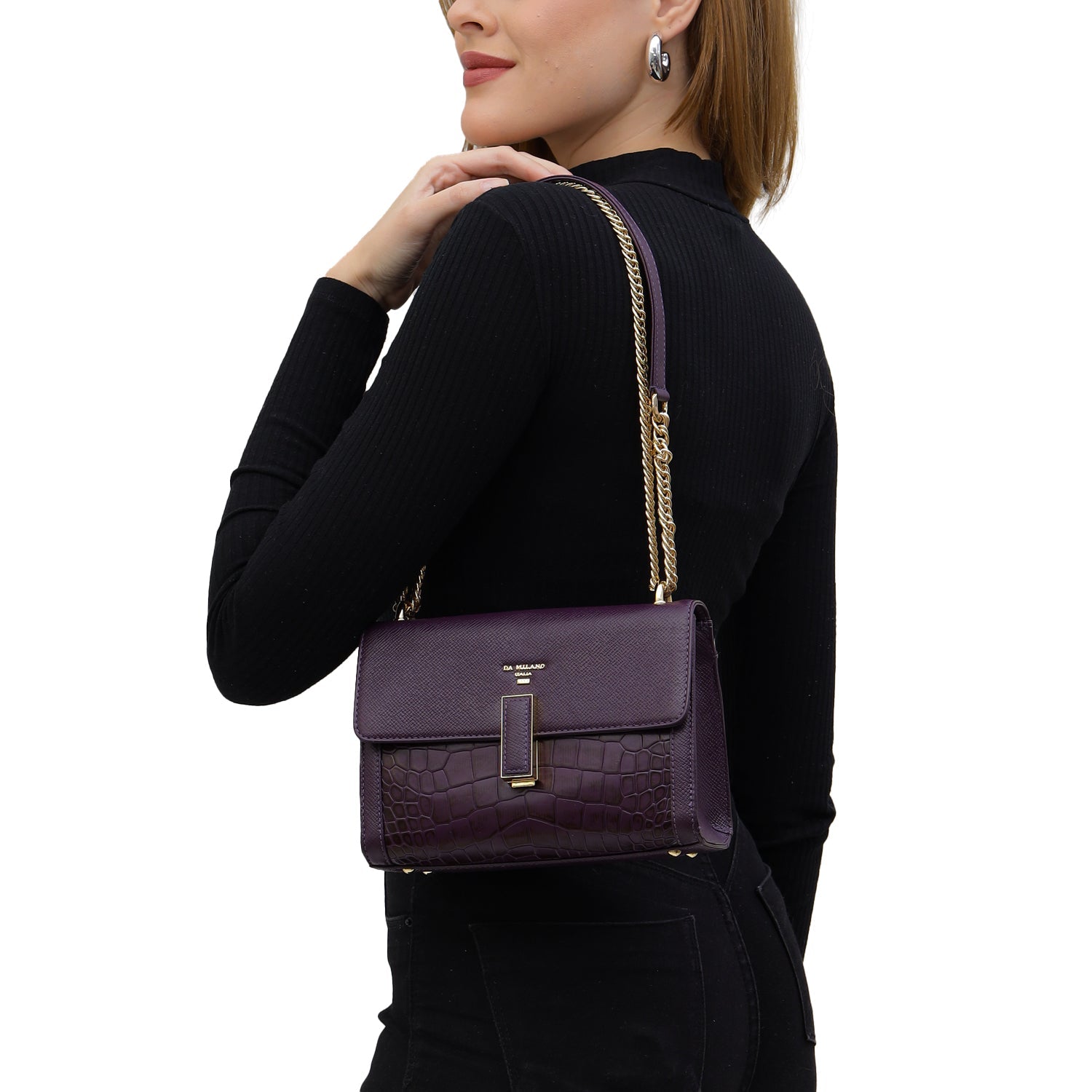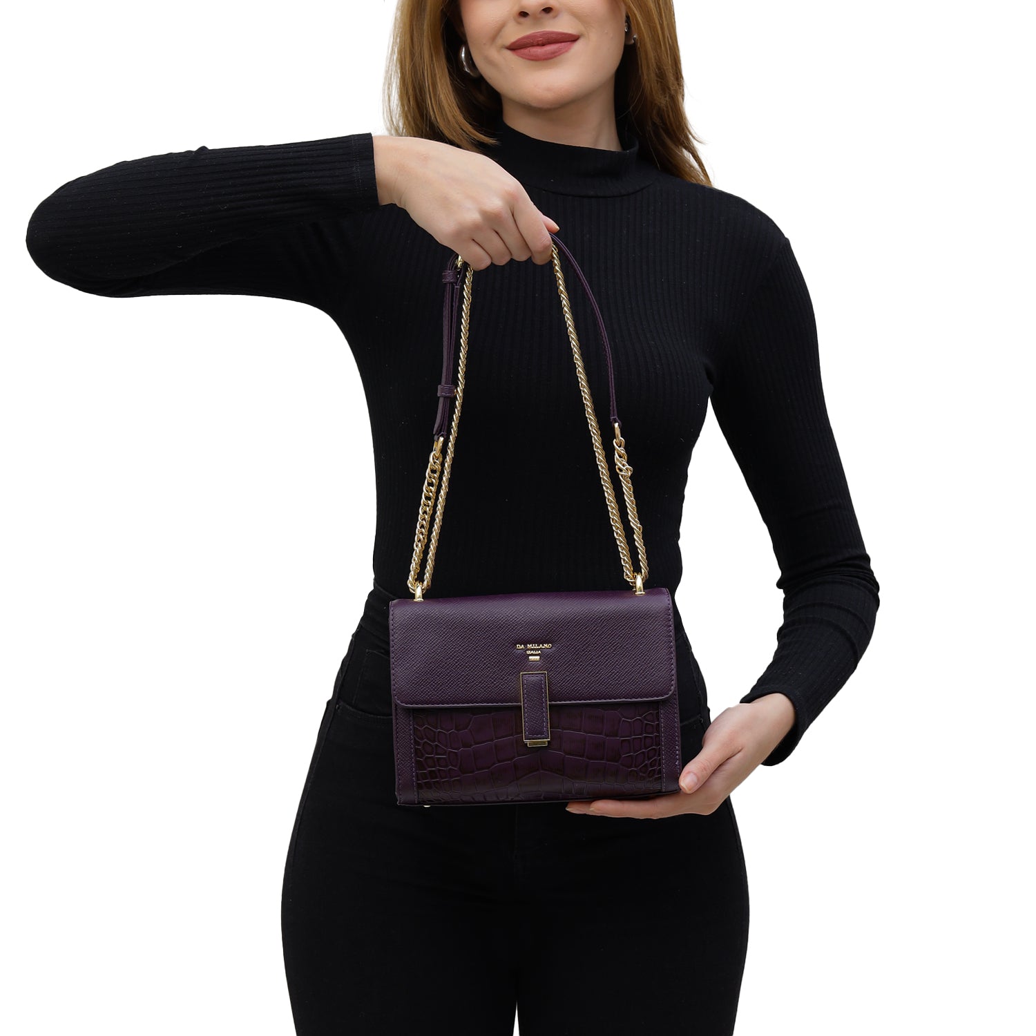 Small Franzy Croco Leather Shoulder Bag - Grapevine