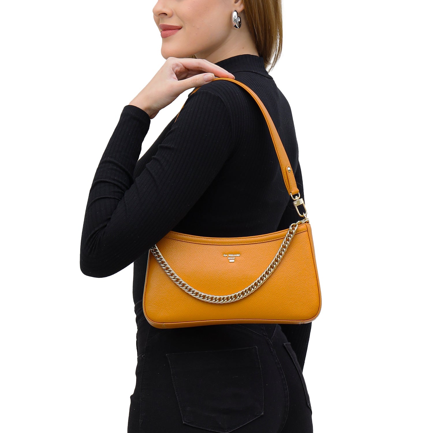 Introducing our sleek Leather Baguette Bag, the epitome of understated elegance. Crafted from luxurious leather, its sleek design and shoulder strap make it a versatile accessory for any occasion. Effortlessly chic, it's the perfect blend of fashion and functionality everyday.