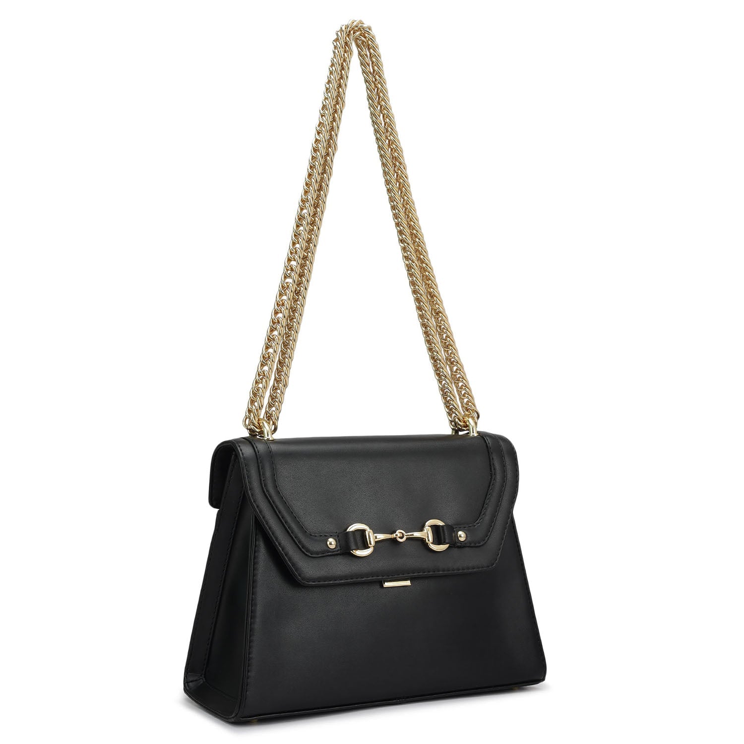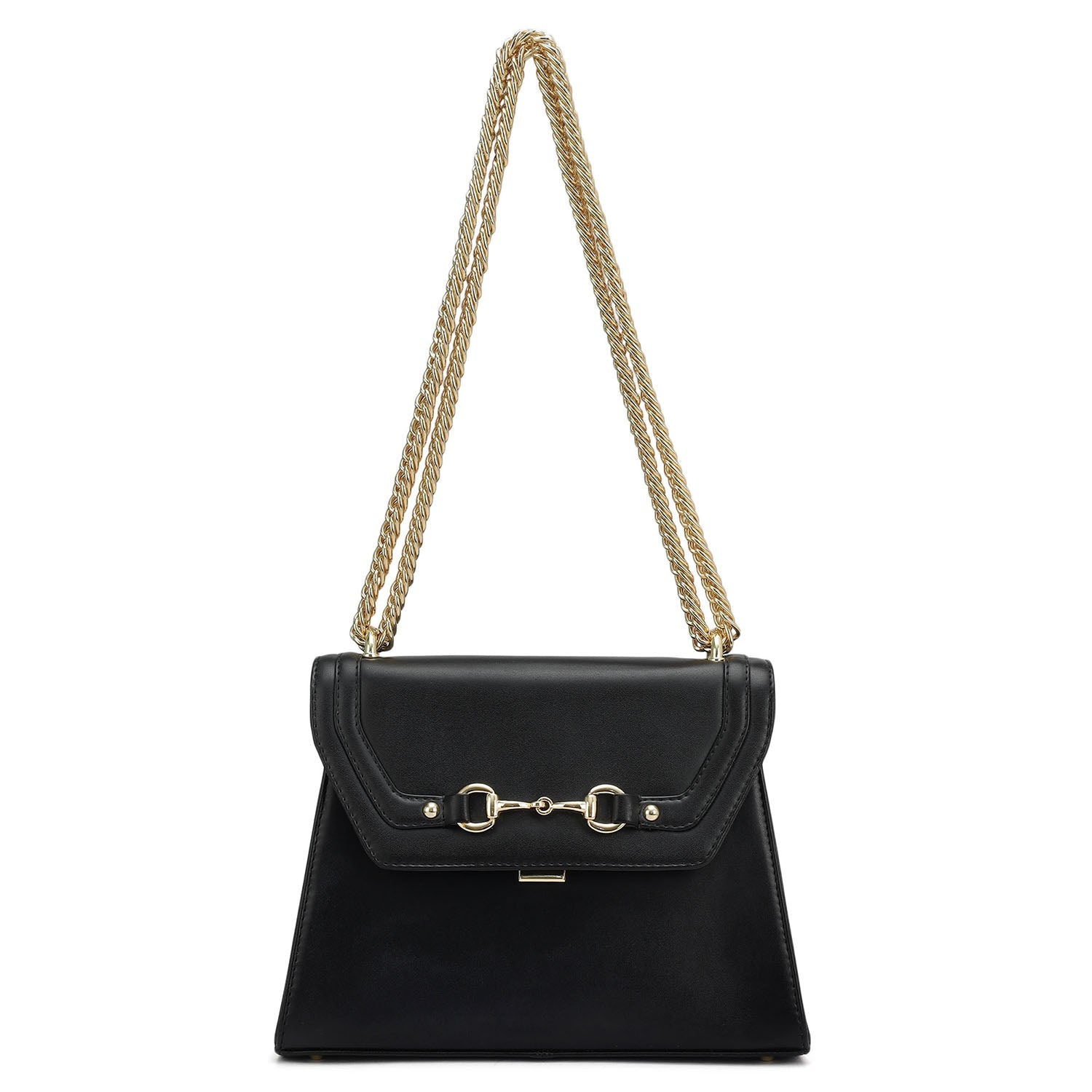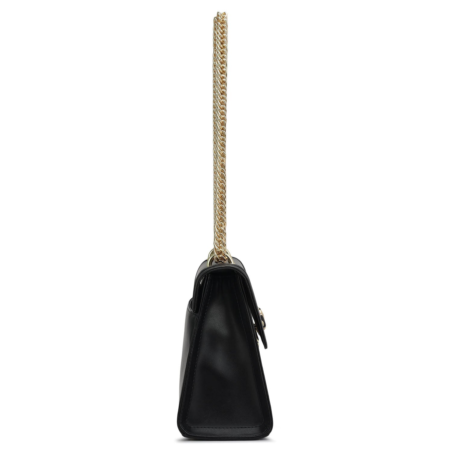 Small Plain Leather Shoulder Bag - Black