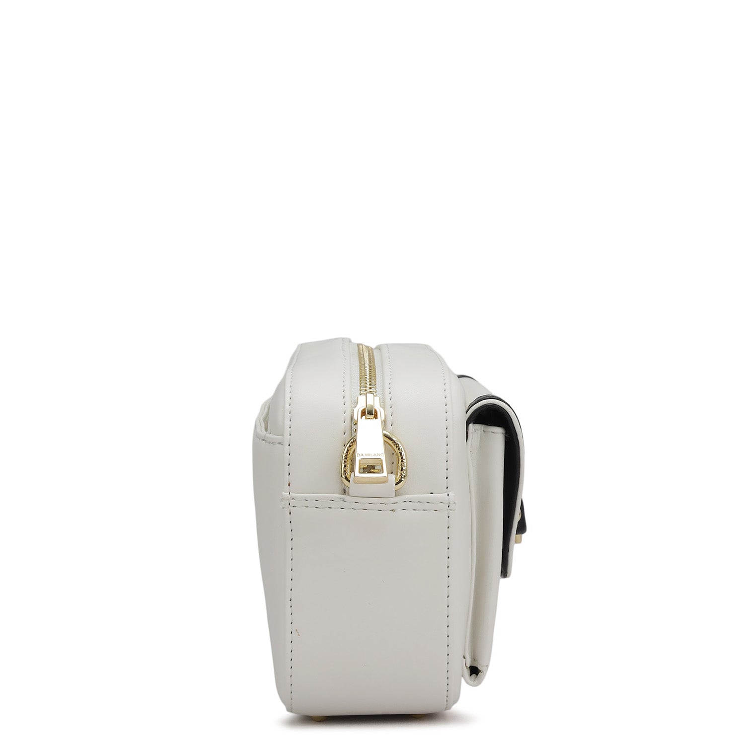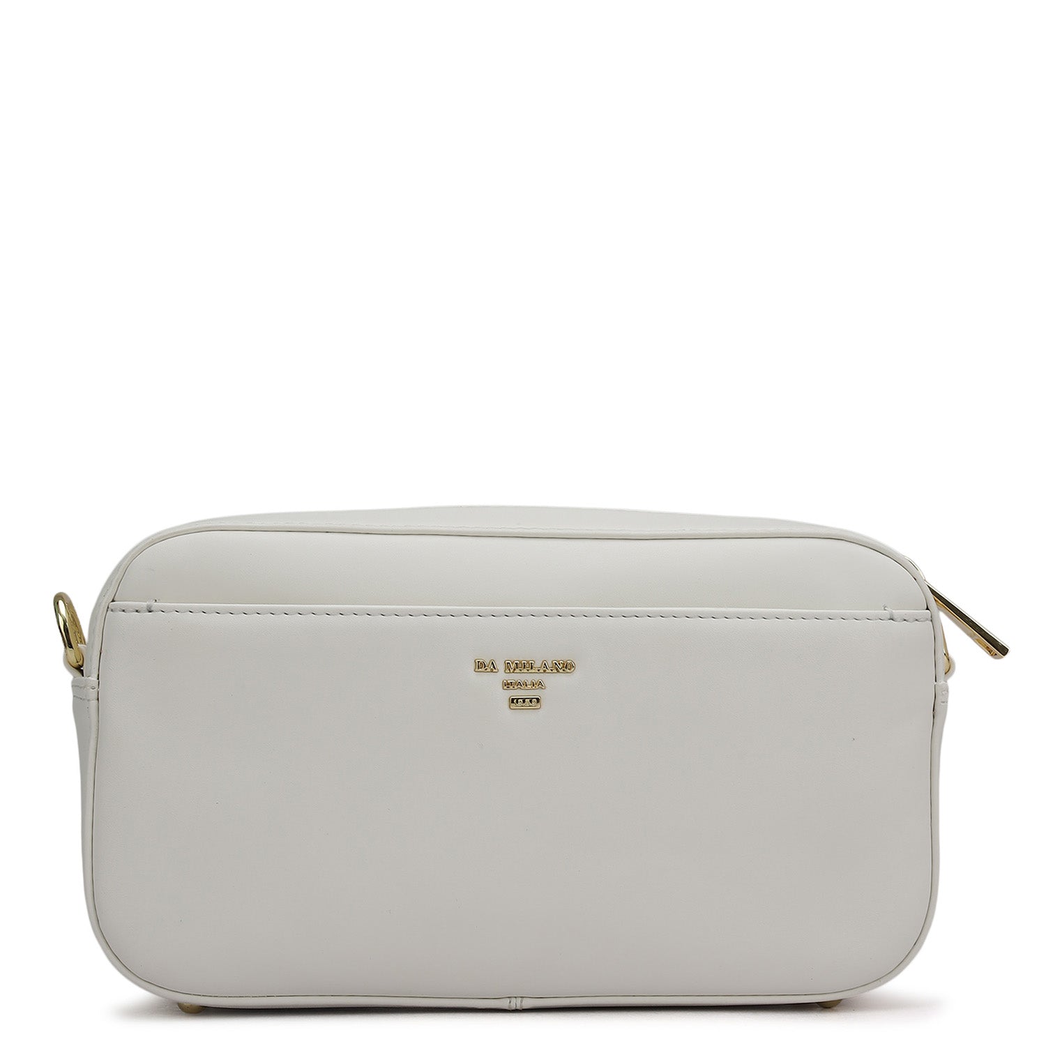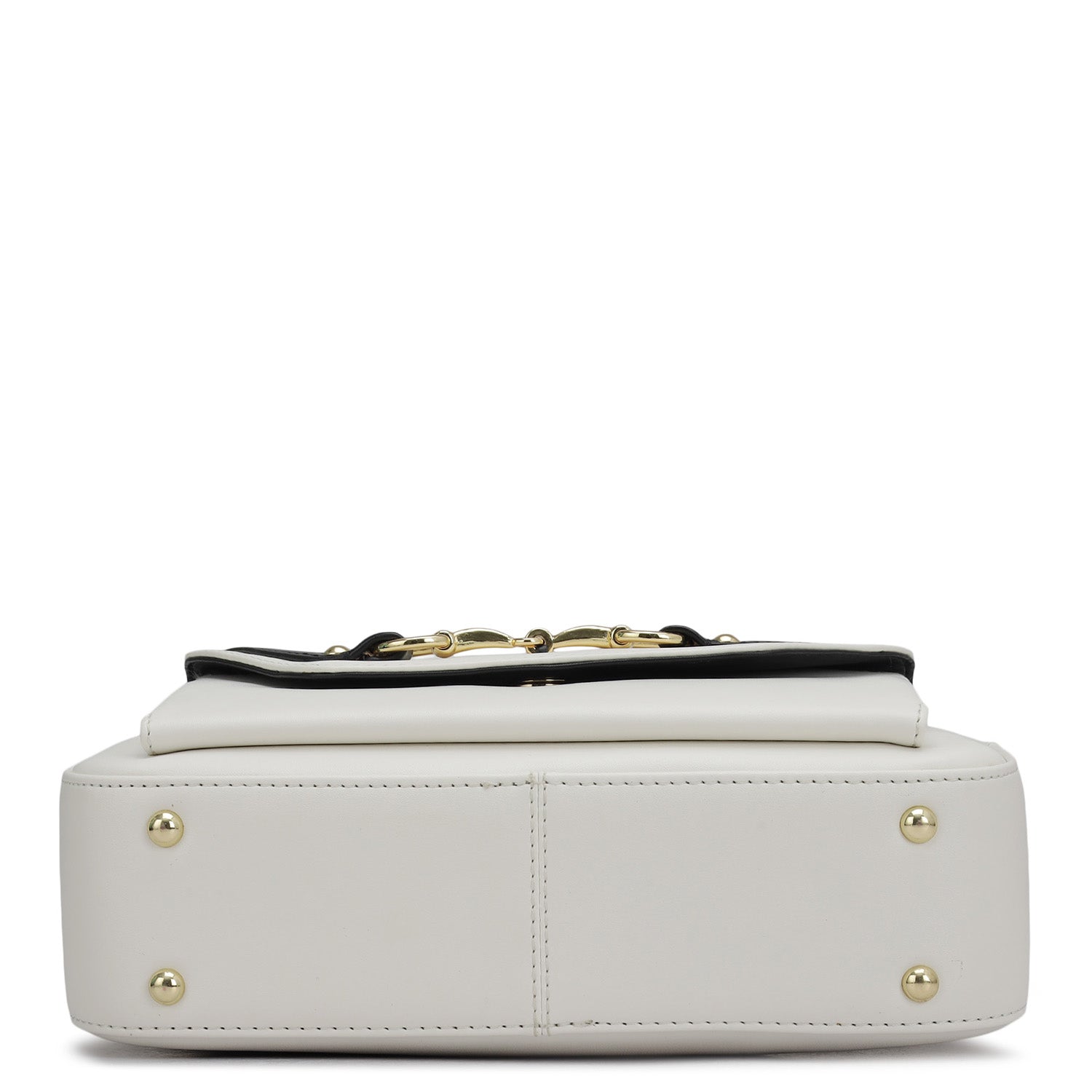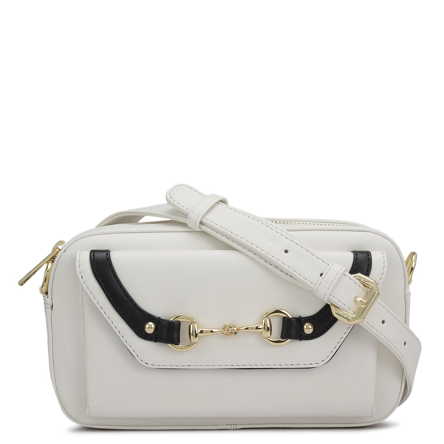 Minimal yet refined, the Classic Leather Sling Bag in Snow White is a perfect blend of clean design and thoughtful functionality. Crafted in smooth, plain genuine leather, it offers a timeless look enhanced by sleek black accents and polished gold-tone hardware.