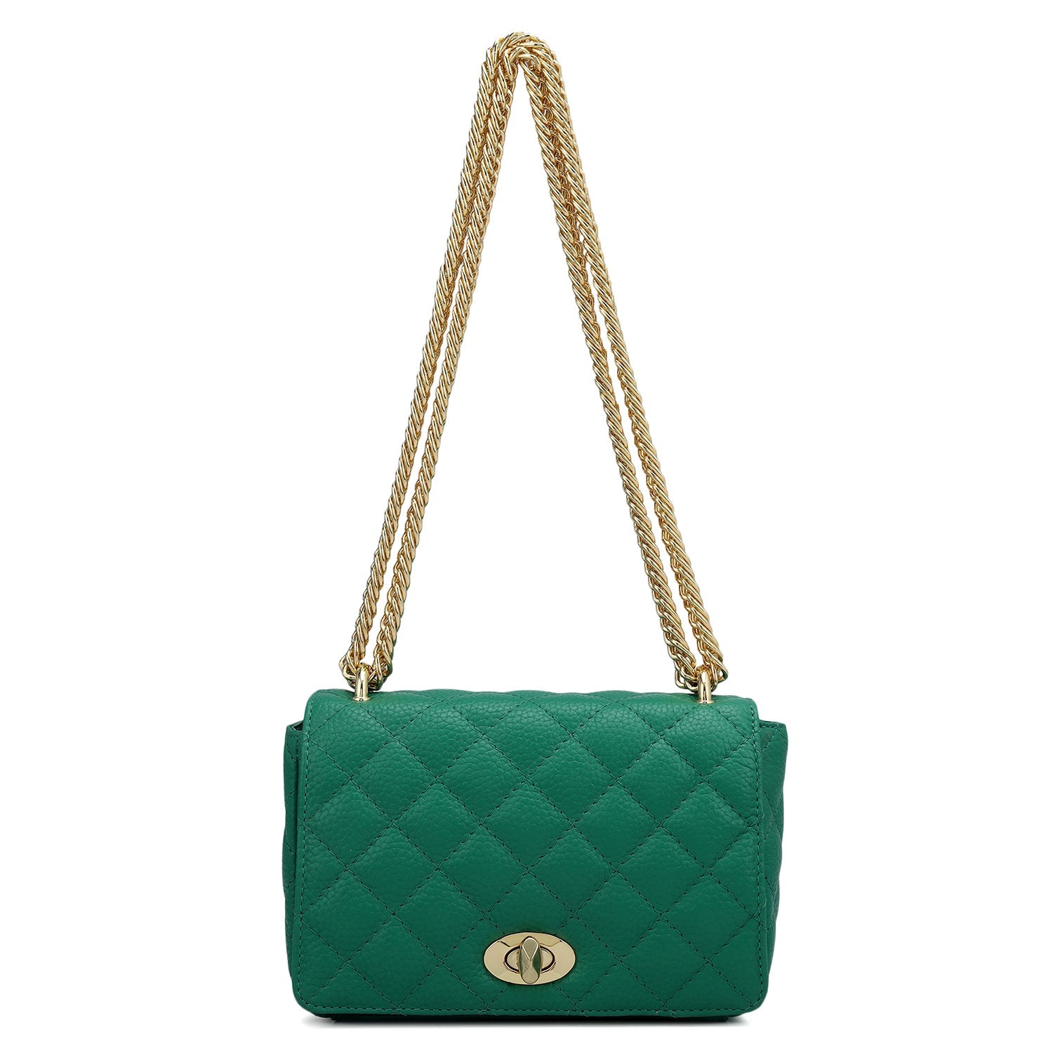 Small Quilting Leather Shoulder Bag - Emerald Green