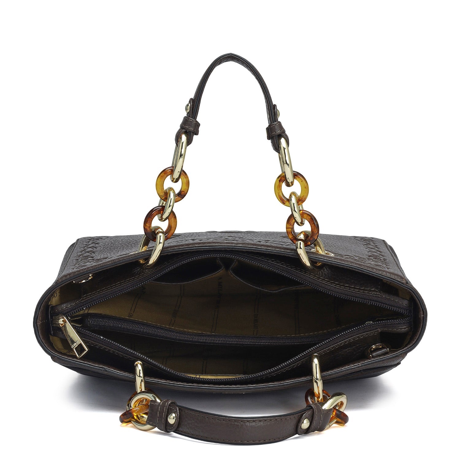 This elegant leather satchel handbag combines timeless style with practical functionality. Crafted from premium full-grain leather, it features a spacious interior with multiple compartments, and a detachable shoulder strap for versatile carrying options. Perfect for both professional and casual situations.