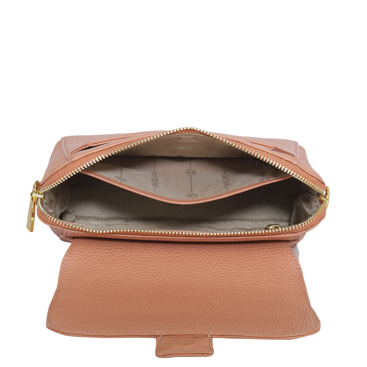 This elegant leather sling handbag combines style and functionality, featuring a sleek design and adjustable strap for versatile wear. Crafted from premium leather, it offers a spacious interior with secure zip closure, perfect for everyday essentials.