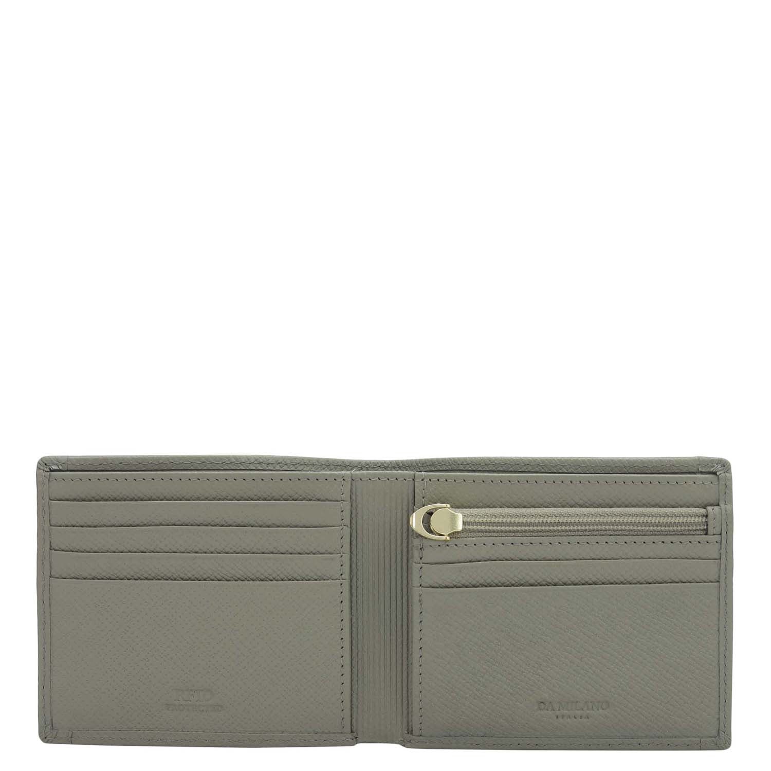 Crafted from textured leather, Da Milano men's bifold wallet offers a compact yet stylish design. Featuring easy-to-organize compartments, card slots, and pockets, it combines practicality with elegance. Subtle branding on the front enhances its refined appearance.