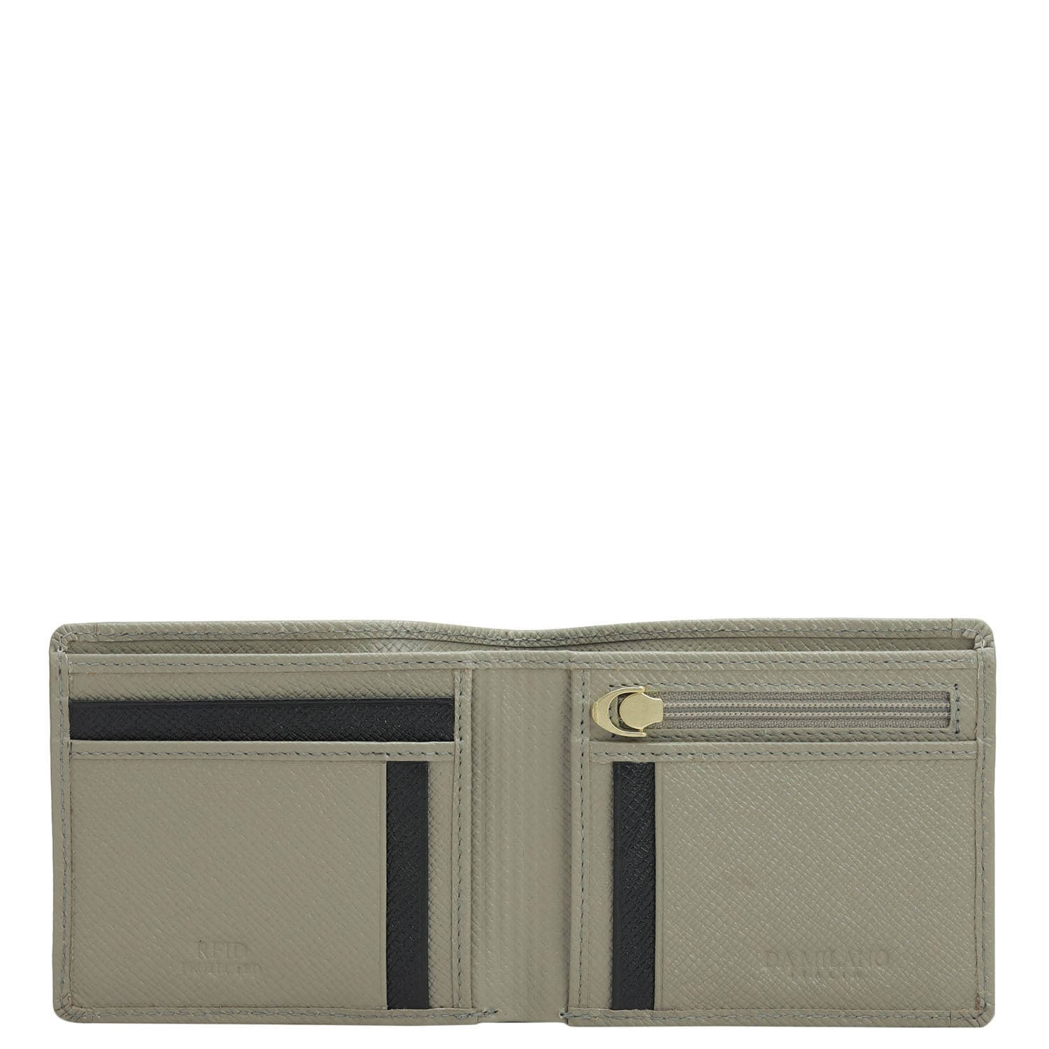 Crafted from textured leather, Da Milano men's bifold wallet offers a compact yet stylish design. Featuring easy-to-organize compartments, card slots, and pockets, it combines practicality with elegance. Subtle branding on the front enhances its refined appearance.