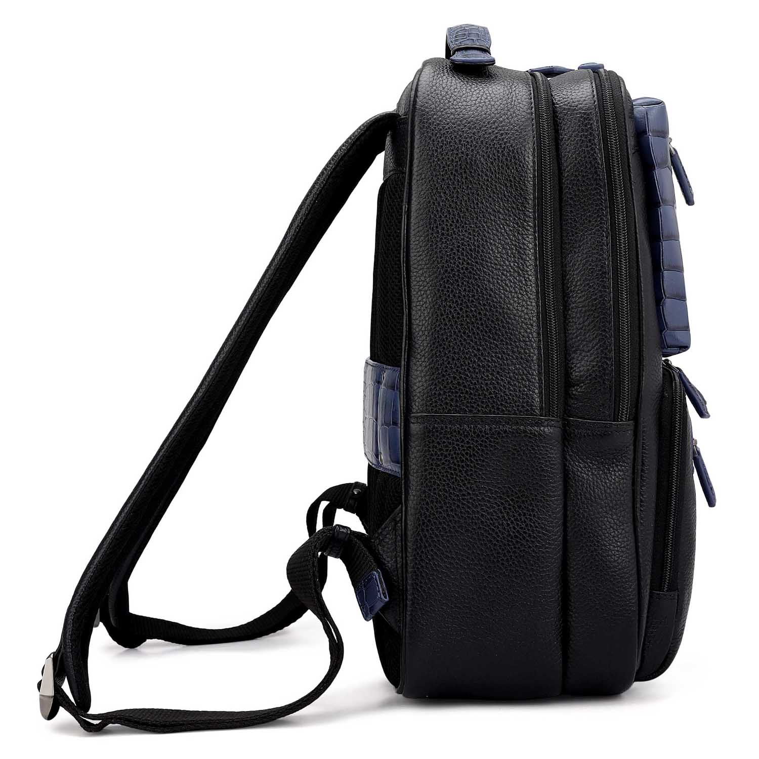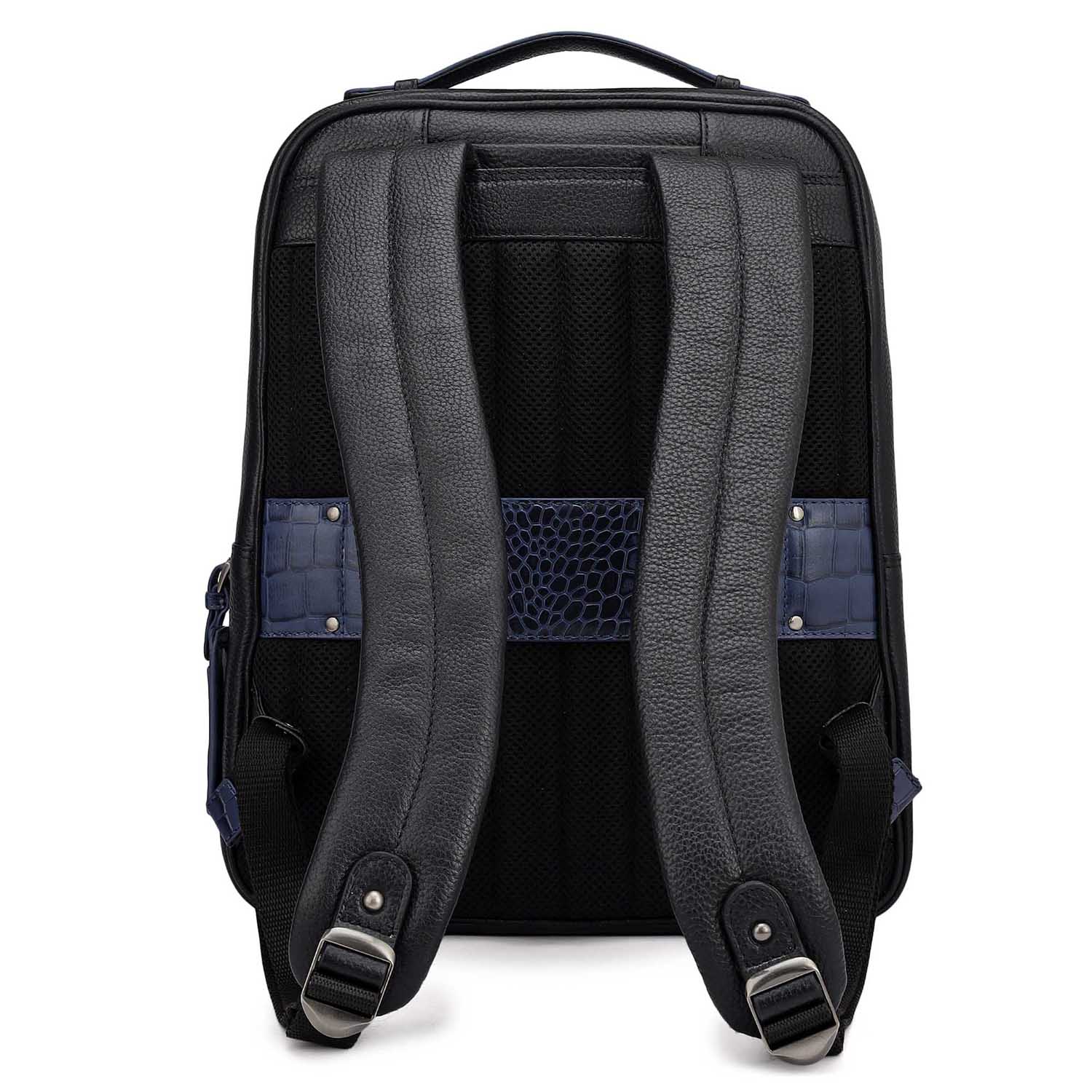 Leather backpack with a play of texture. Featuring multipurpose pockets on the exterior as well as interior to enhance utility. This functional bag is the perfect fusion of Italian craftsmanship and contemporary style. Comes with a detachable shoulder strap, and the bag can fit a standard laptop up to 15 inches.
