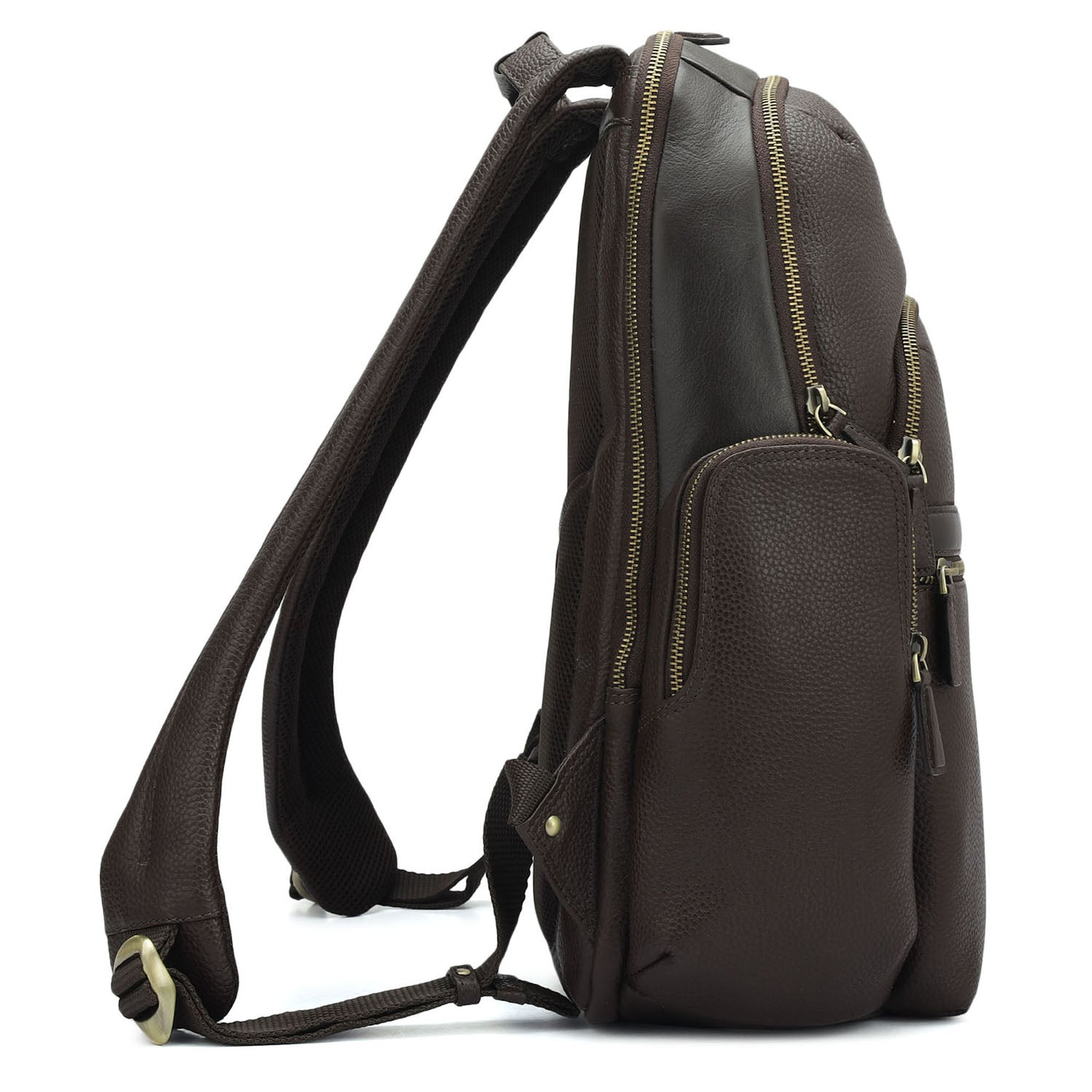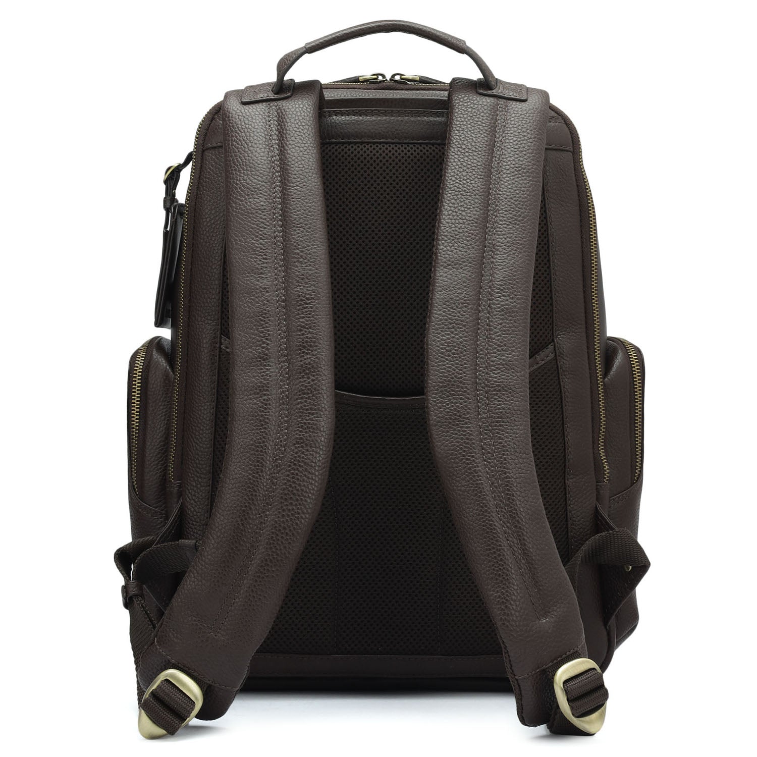 Leather backpack with a play of texture. Featuring multipurpose pockets on the exterior as well as interior to enhance utility. This functional bag is the perfect fusion of Italian craftsmanship and contemporary style. Comes with a detachable shoulder strap, and the bag can fit a standard laptop up to 15 inches.