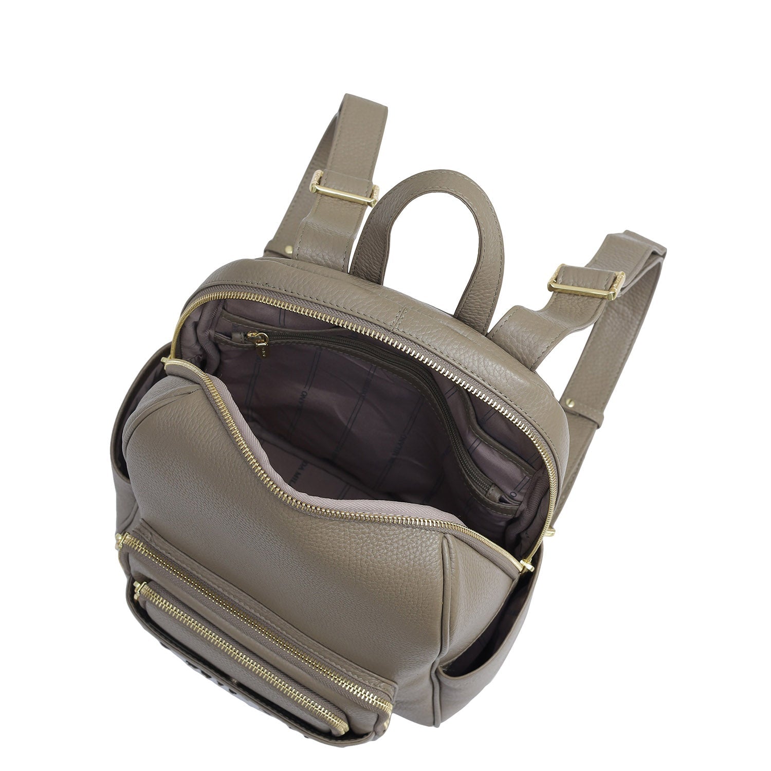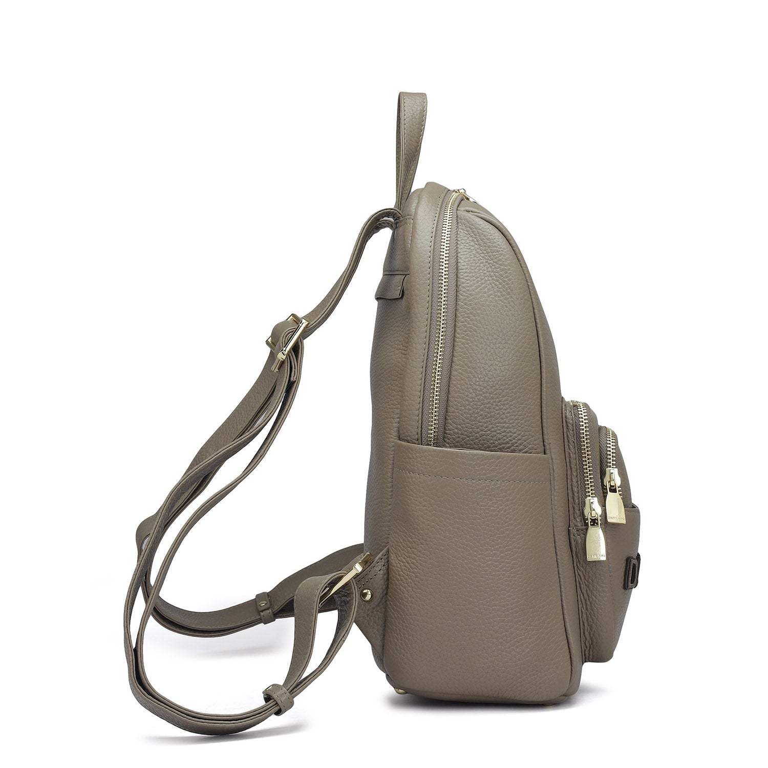 Leather backpack with a play of texture. Featuring multipurpose pockets on the exterior as well as interior to enhance utility. This functional bag is the perfect fusion of Italian craftsmanship and contemporary style.