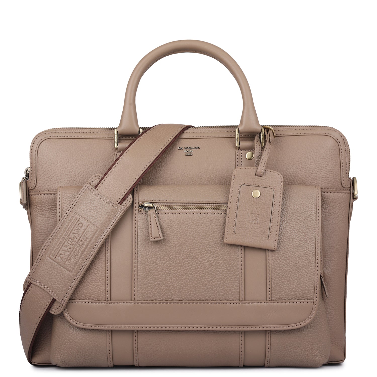 Upraise your professional ensemble with our leather laptop bags, meticulously crafted to marry sophistication with practicality. Designed to accommodate laptops of various sizes, these bags feature premium leather for durability and style, ensuring you make a statement in any business setting. Comes with a detachable shoulder strap, and the bag can fit a standard laptop up to 15 inches.