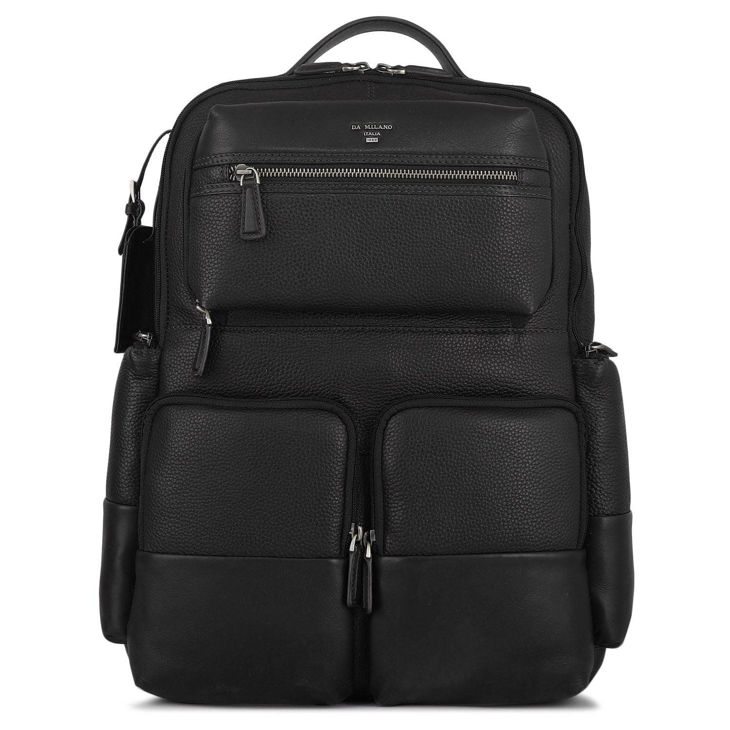 Leather backpack with a play of texture. Featuring multipurpose pockets on the exterior as well as interior to enhance utility. This functional bag is the perfect fusion of Italian craftsmanship and contemporary style. This bag can fit a standard laptop up to 15 inches.