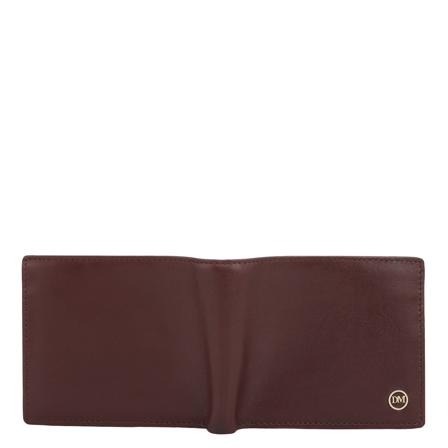 Crafted from textured leather, Da Milano men's bifold wallet offers a compact yet stylish design. Featuring easy-to-organize compartments, card slots, and pockets, it combines practicality with elegance. Subtle branding on the front enhances its refined appearance.